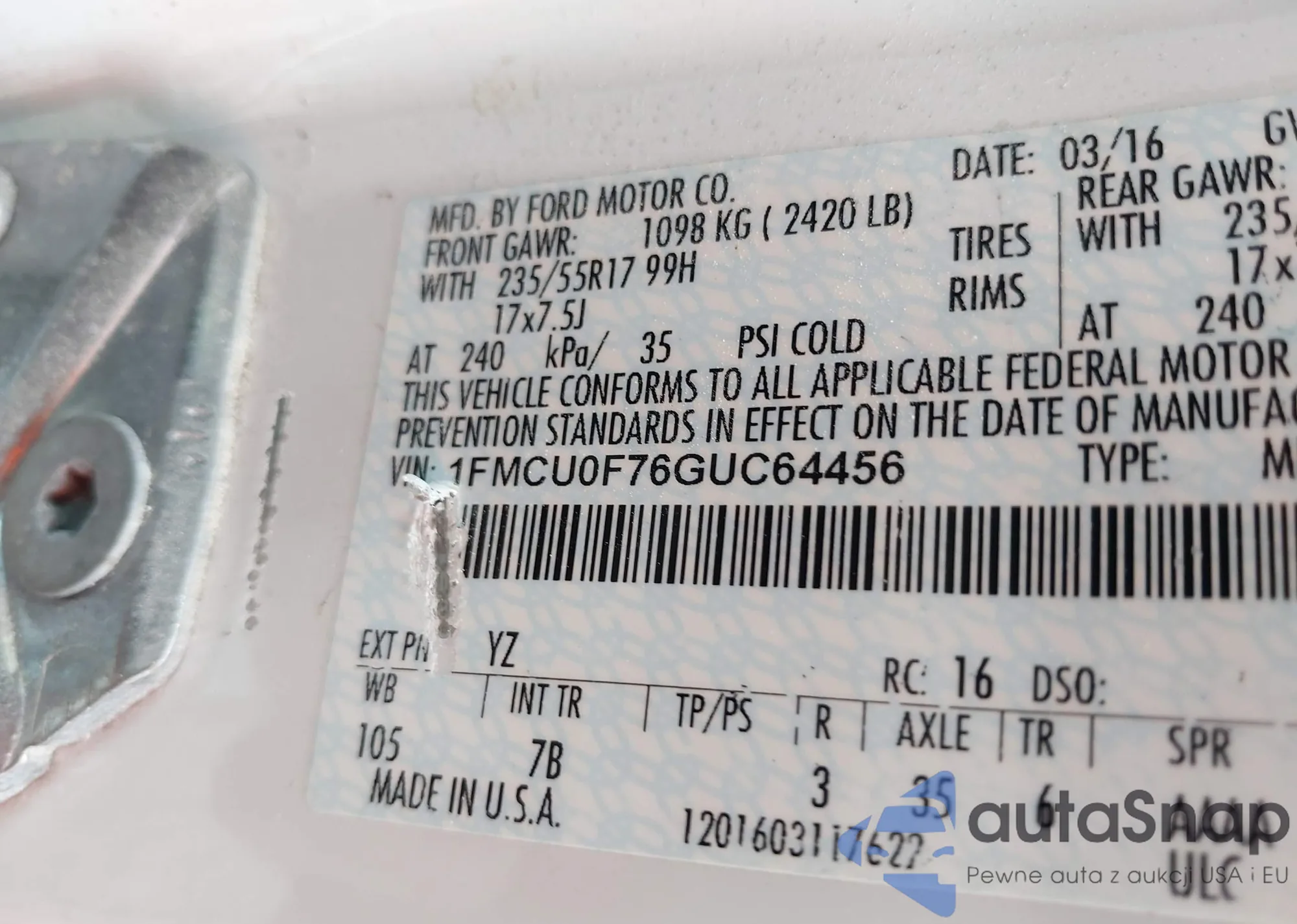VIN: 1FMCU0F76GUC64456