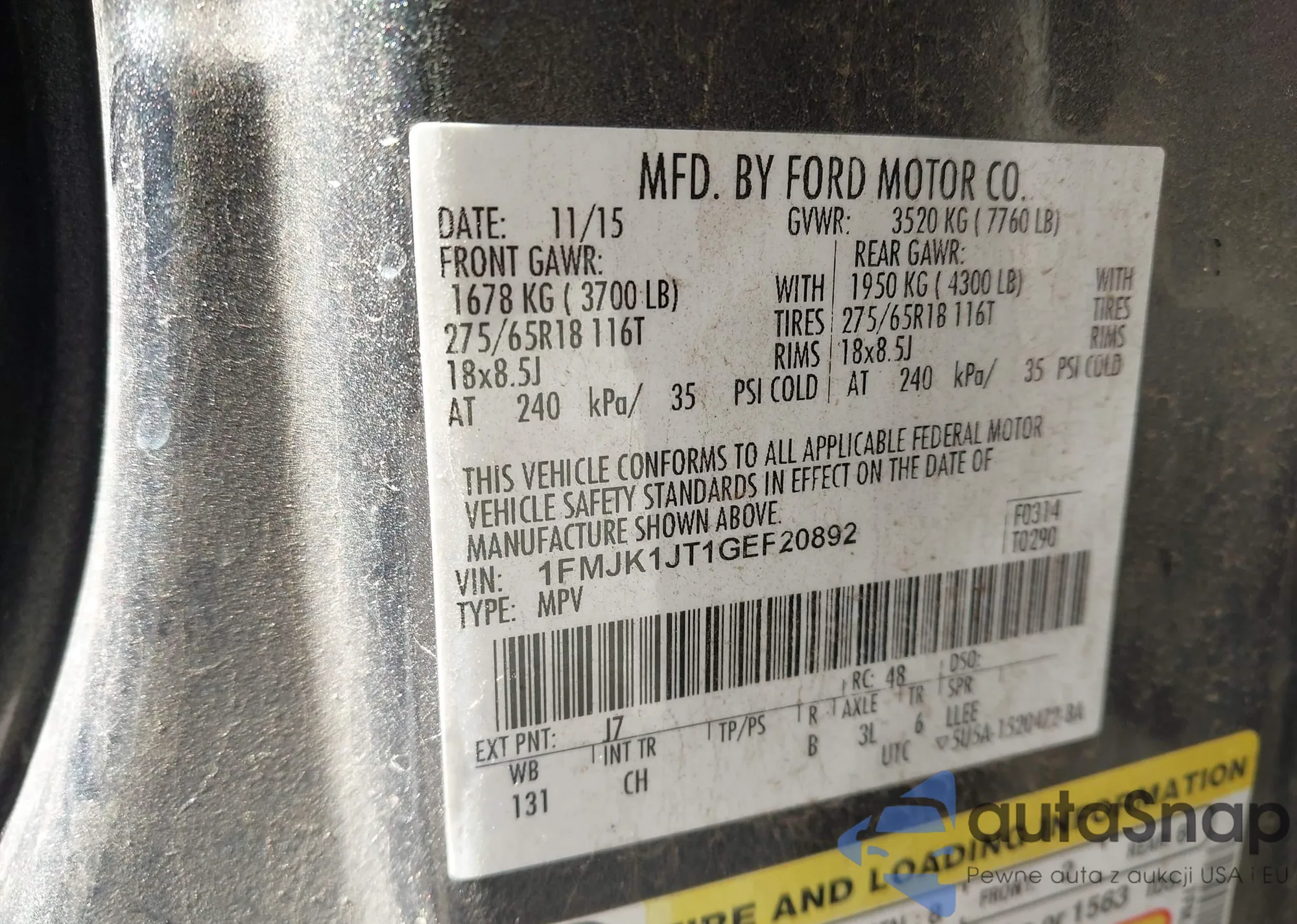 VIN: 1FMJK1JT1GEF20892