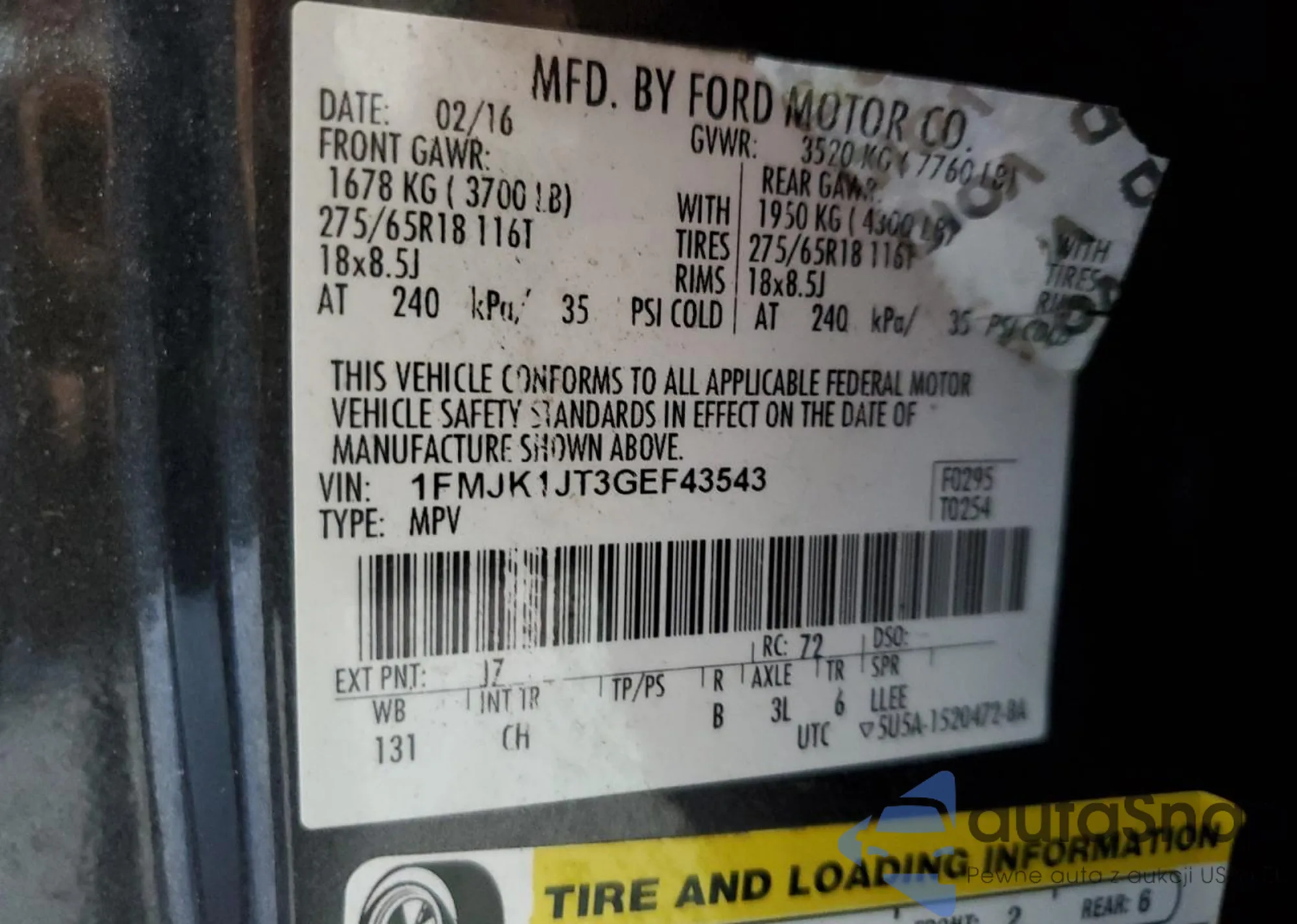 VIN: 1FMJK1JT3GEF43543