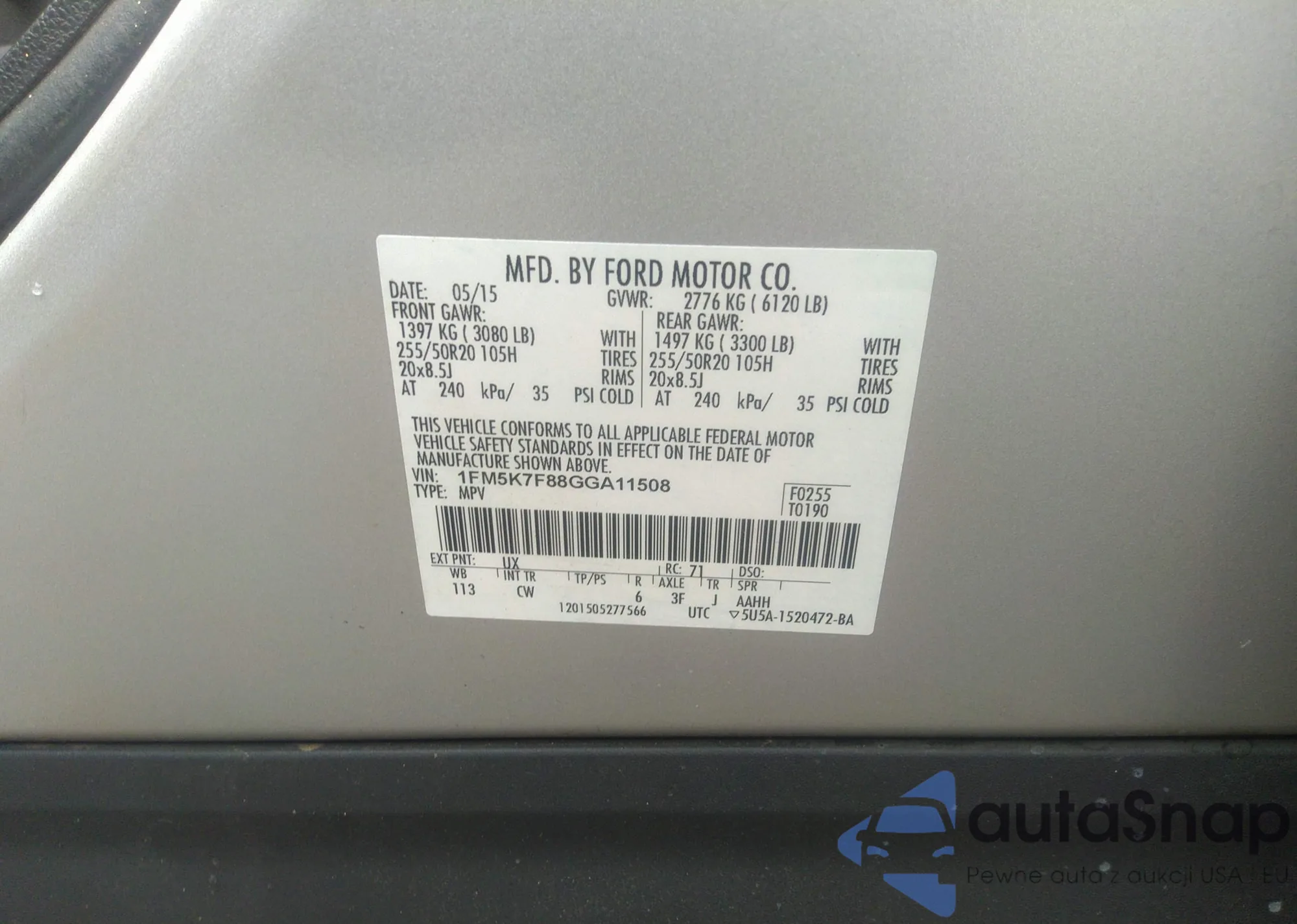 VIN: 1FM5K7F88GGA11508