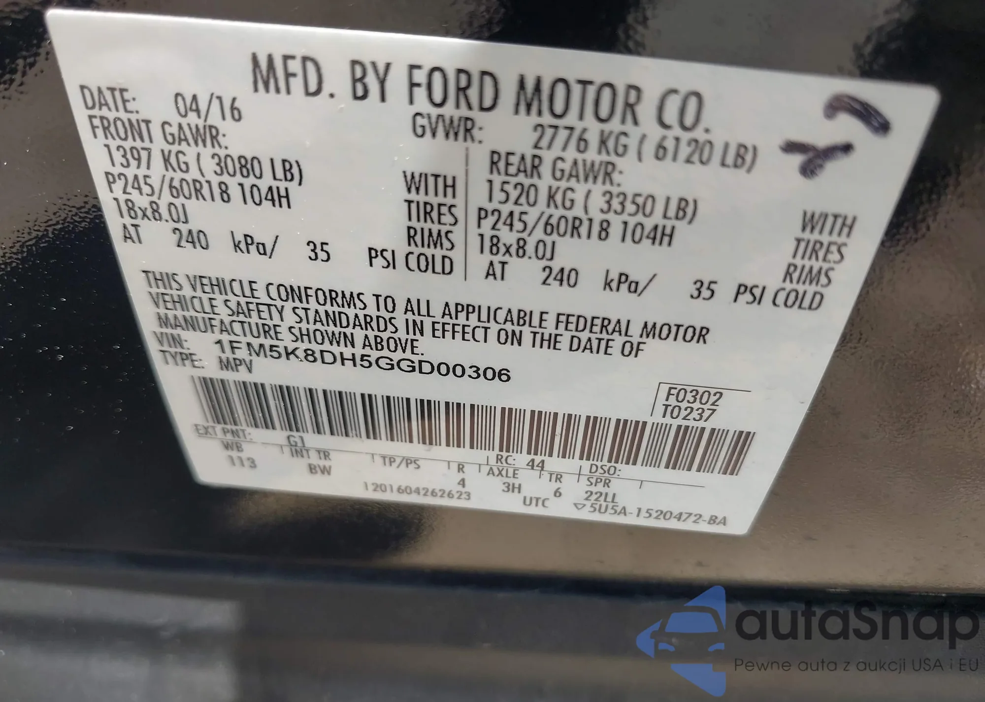 VIN: 1FM5K8DH5GGD00306