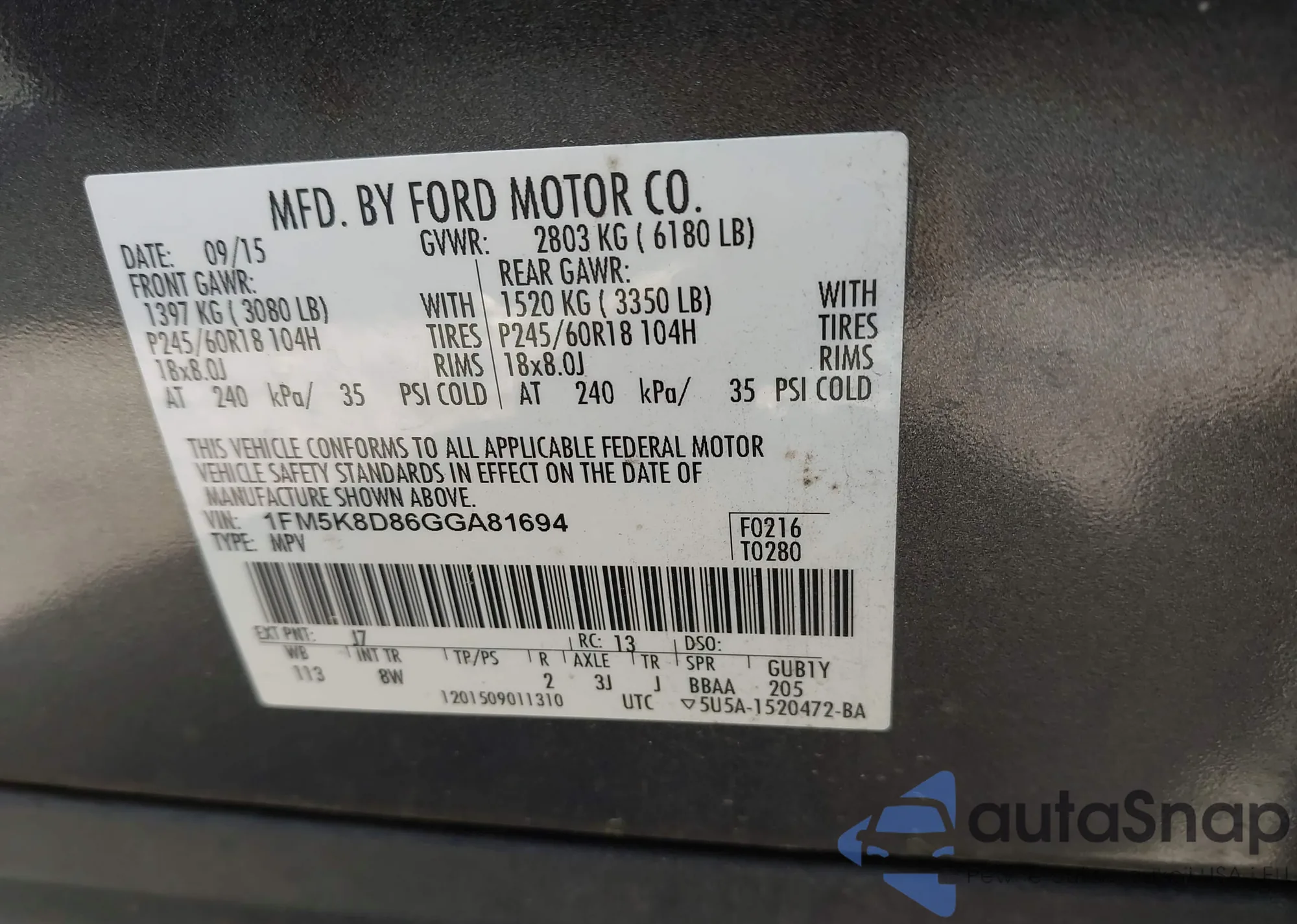 VIN: 1FM5K8D86GGA81694