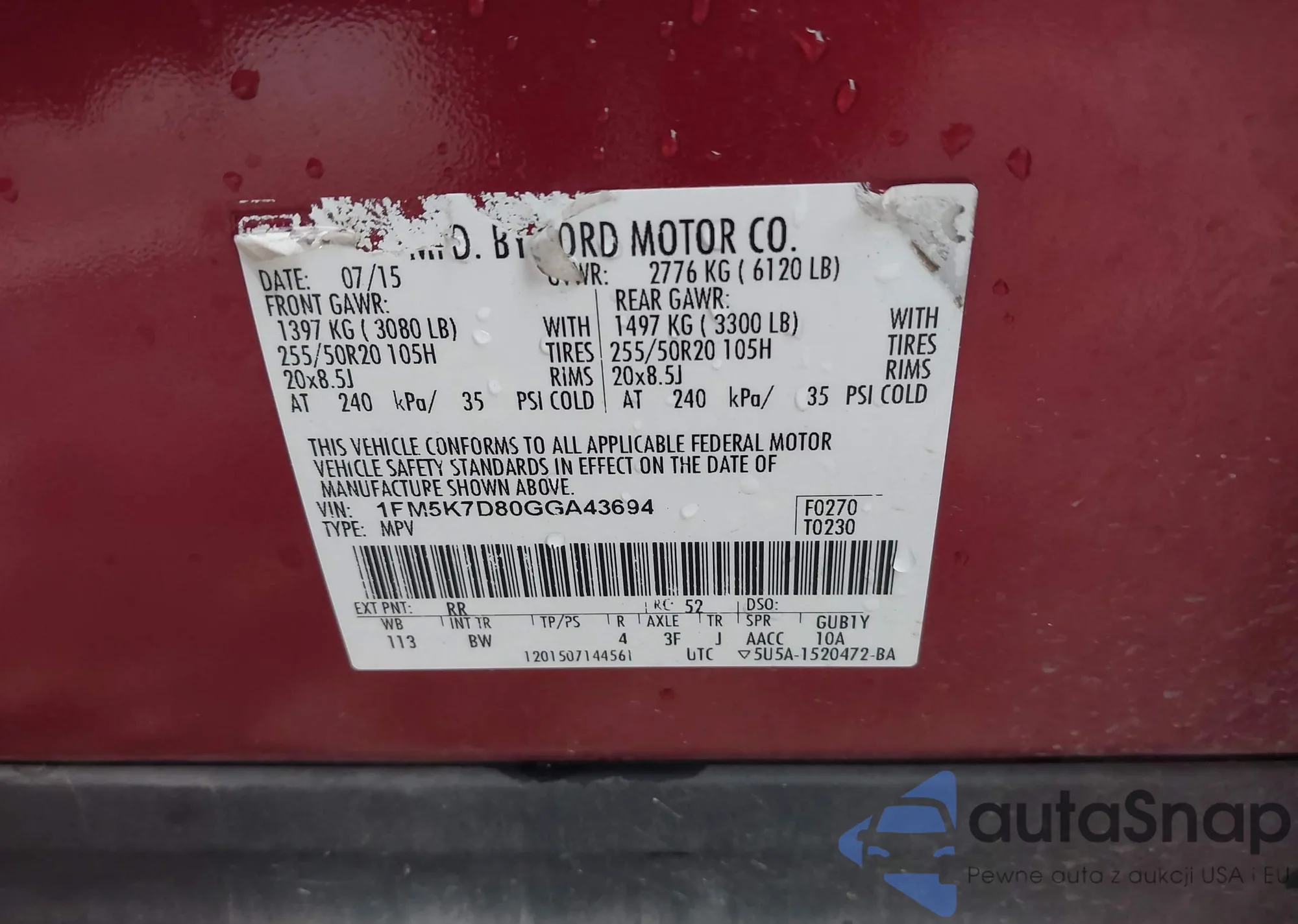 • VIN: 1FM5K7D80GGA43694