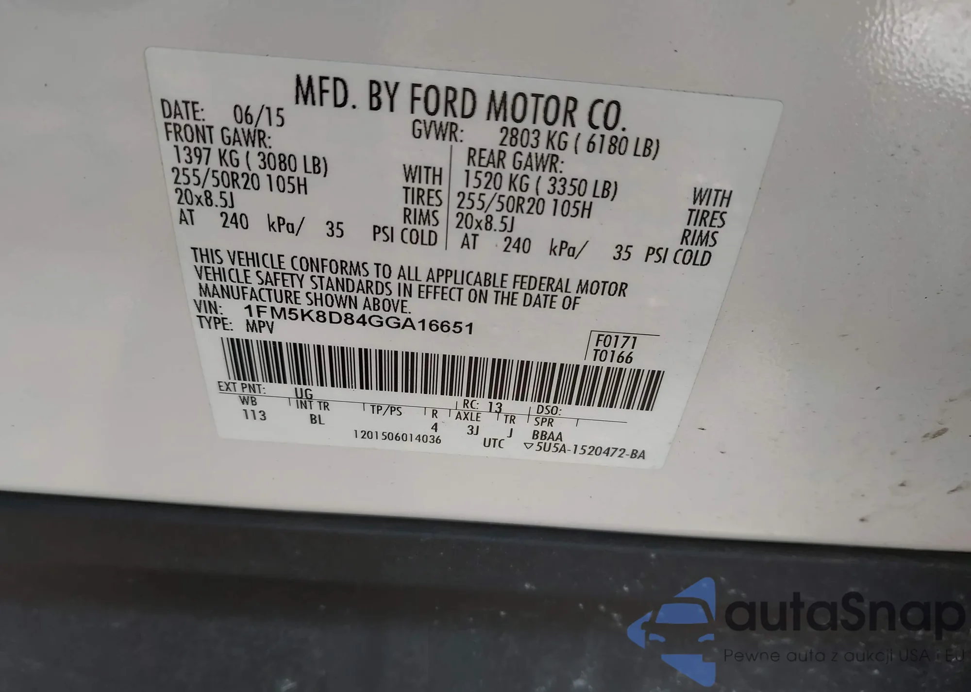 VIN: 1FM5K8D84GGA16651