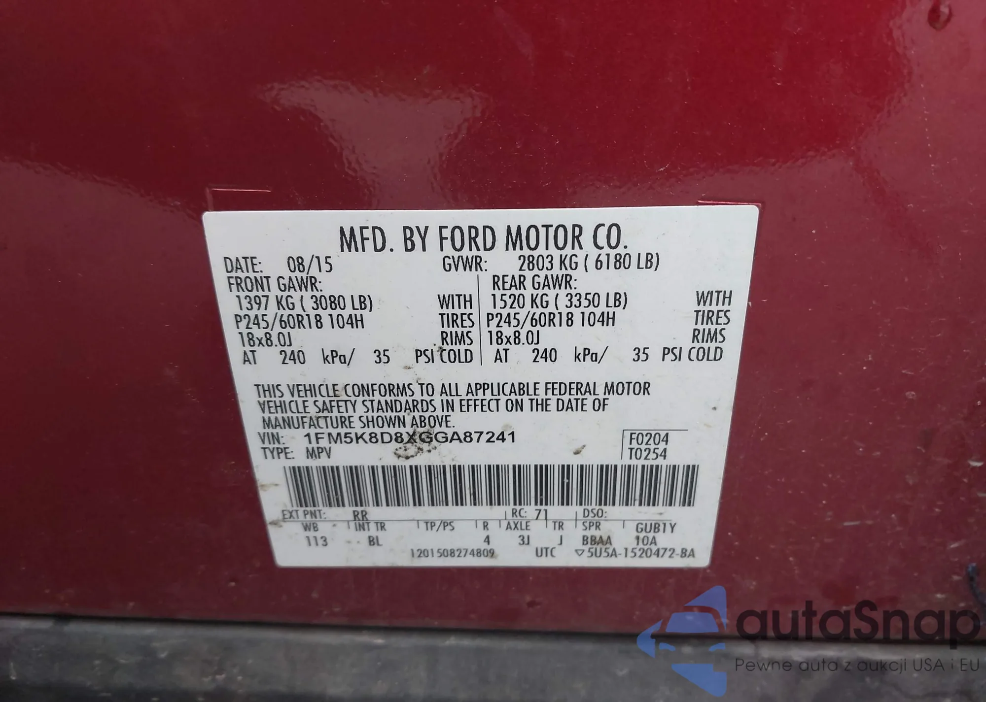 VIN: 1FM5K8D8XGGA87241