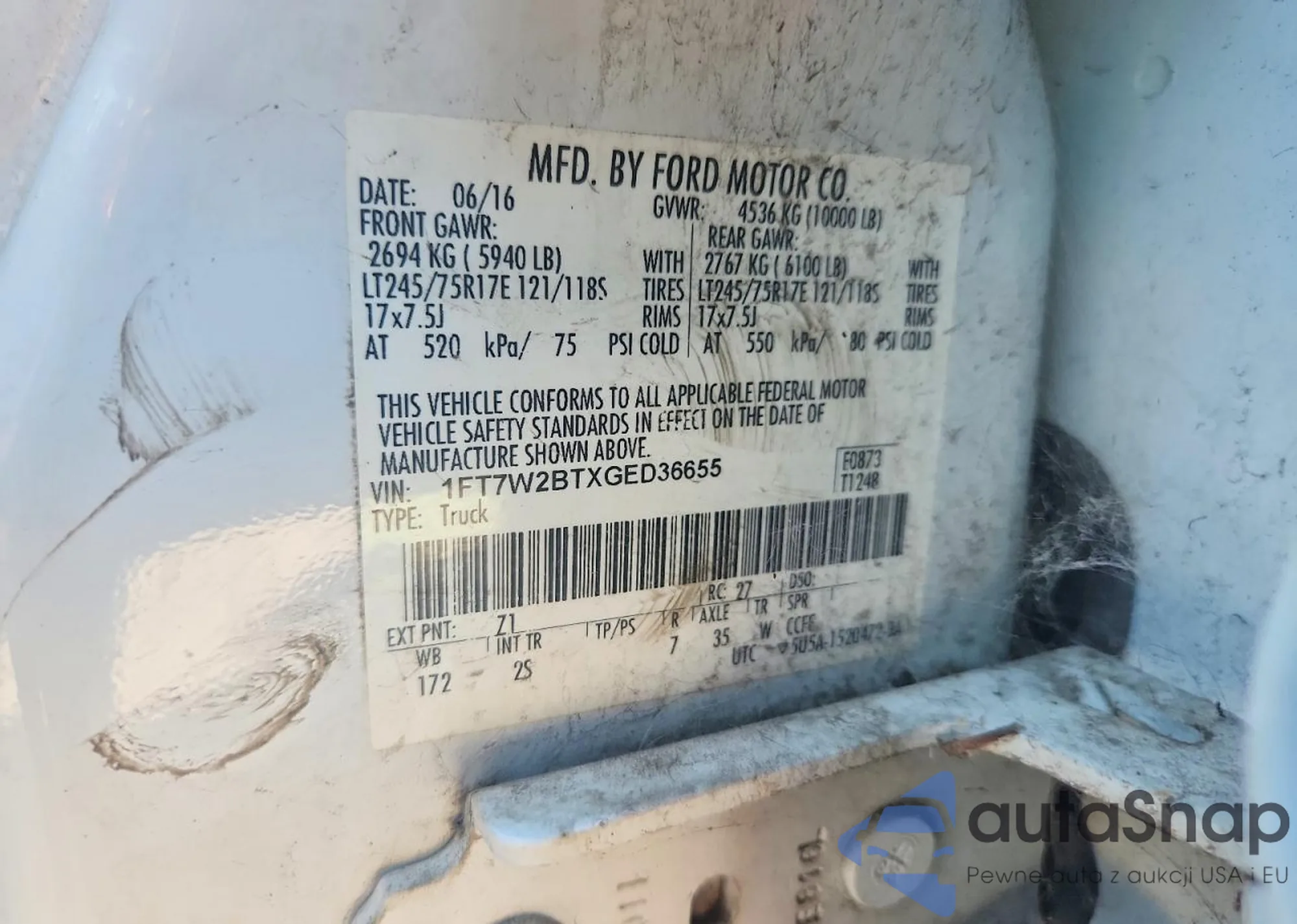 VIN: 1FT7W2BTXGED36655