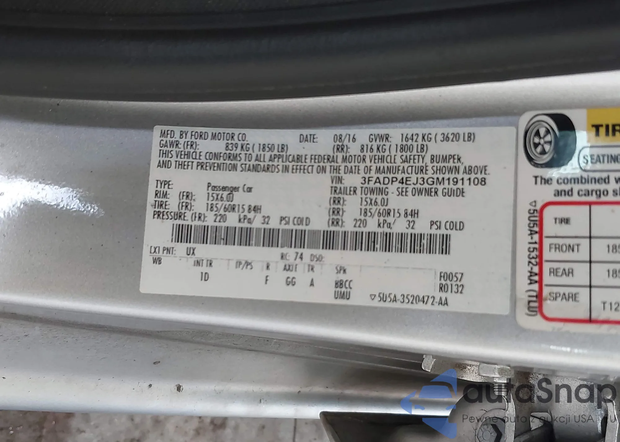 VIN: 3FADP4EJ3GM191108