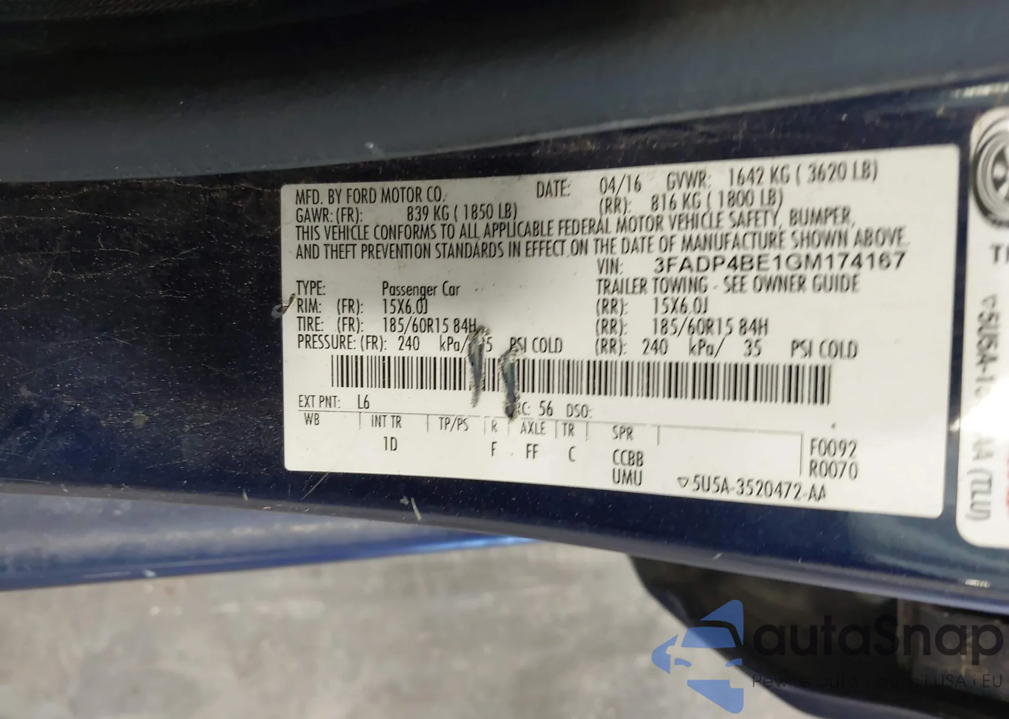 VIN: 3FADP4BE1GM174167