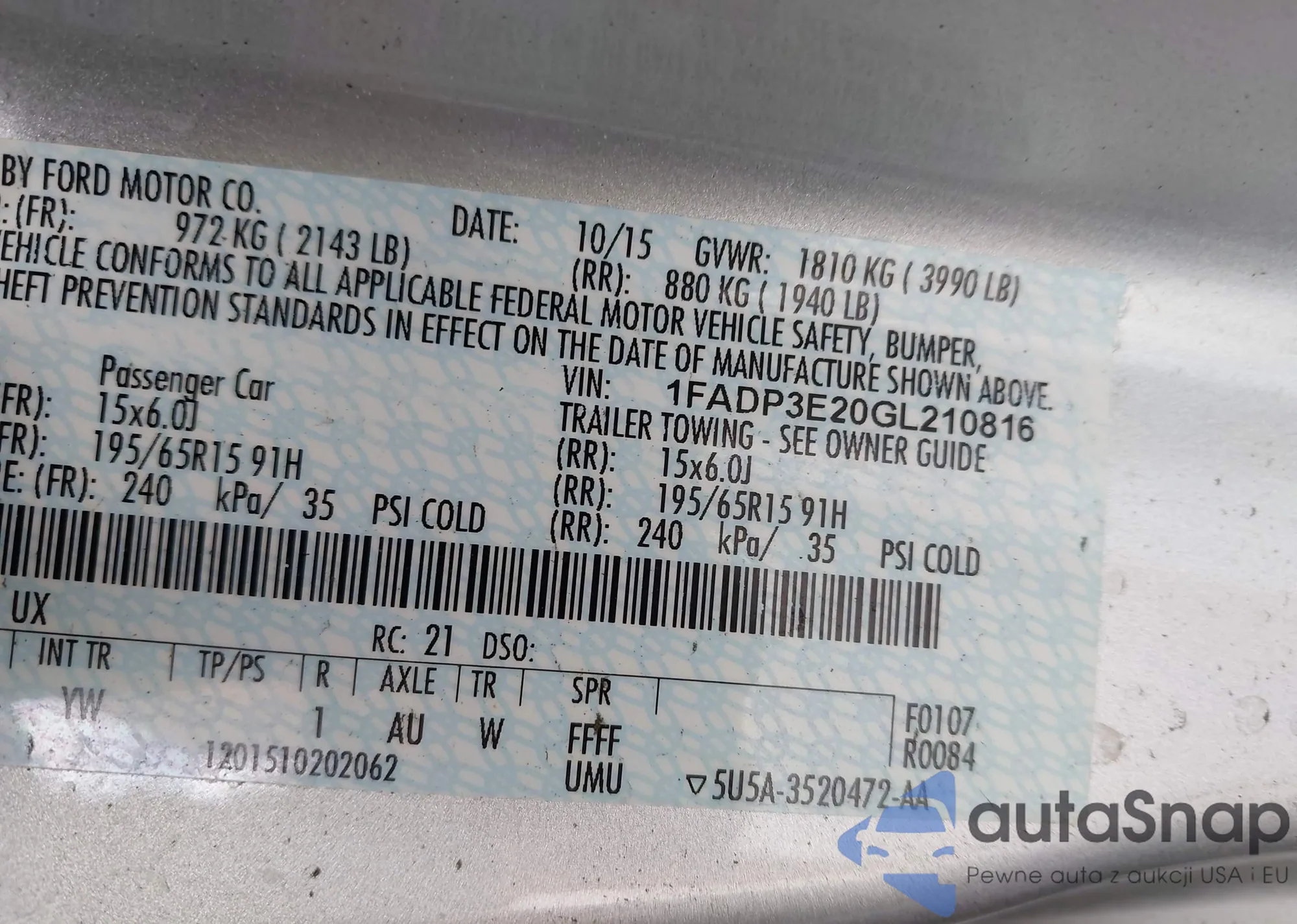 VIN: 1FADP3E20GL210816