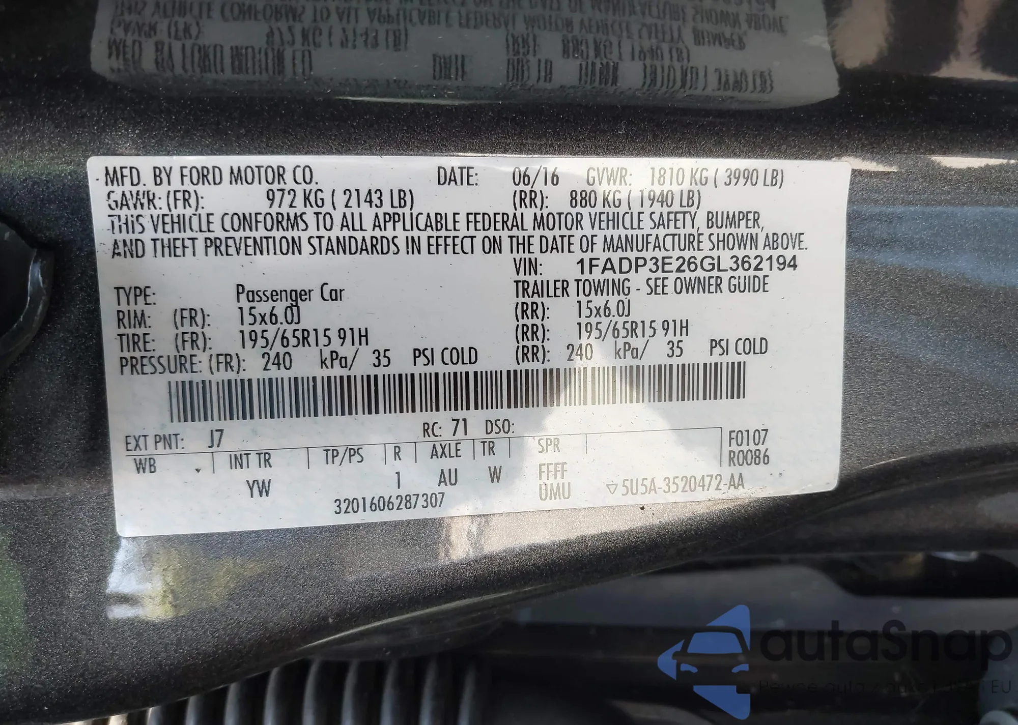 VIN: 1FADP3E26GL362194