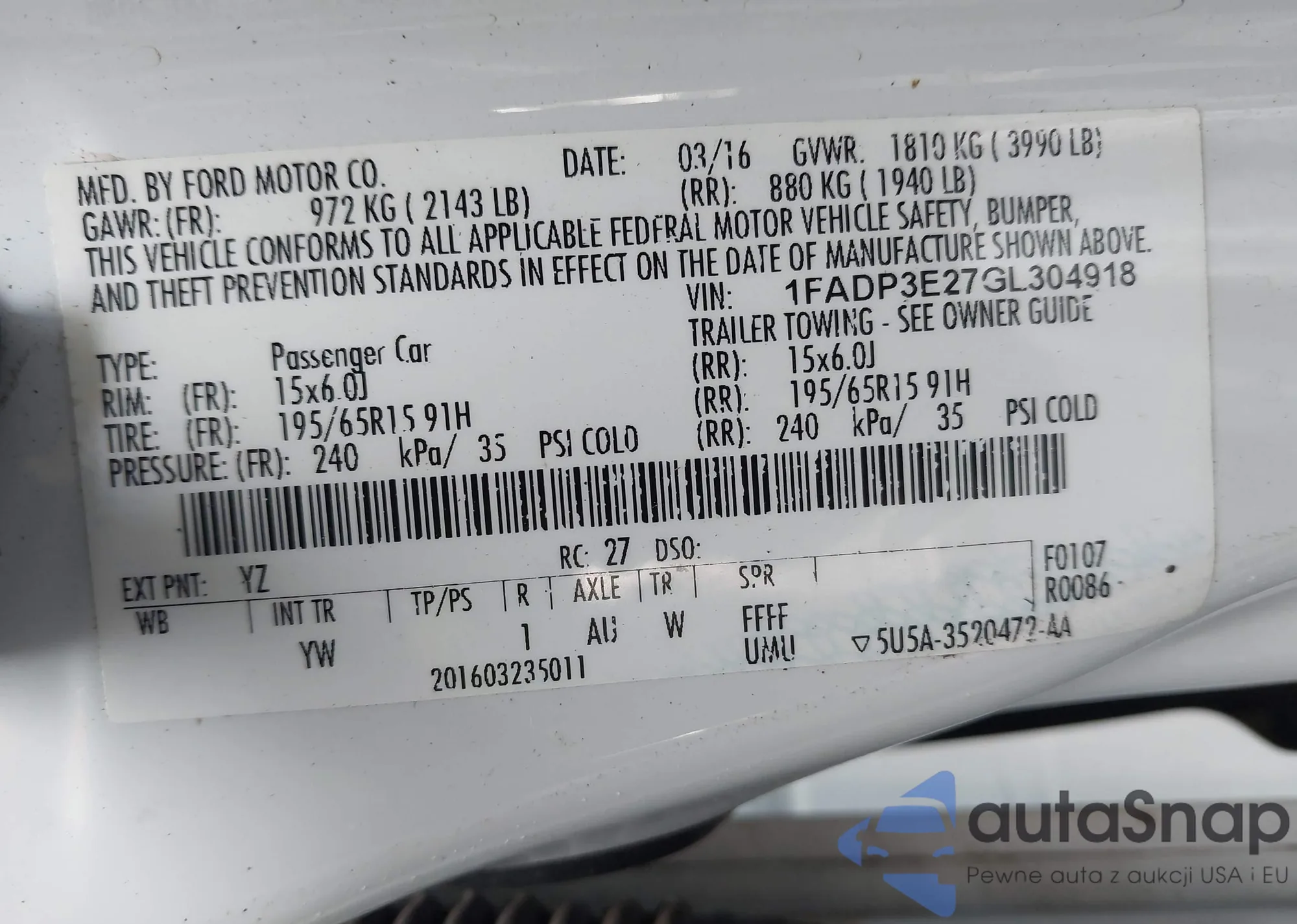 VIN: 1FADP3E27GL304918