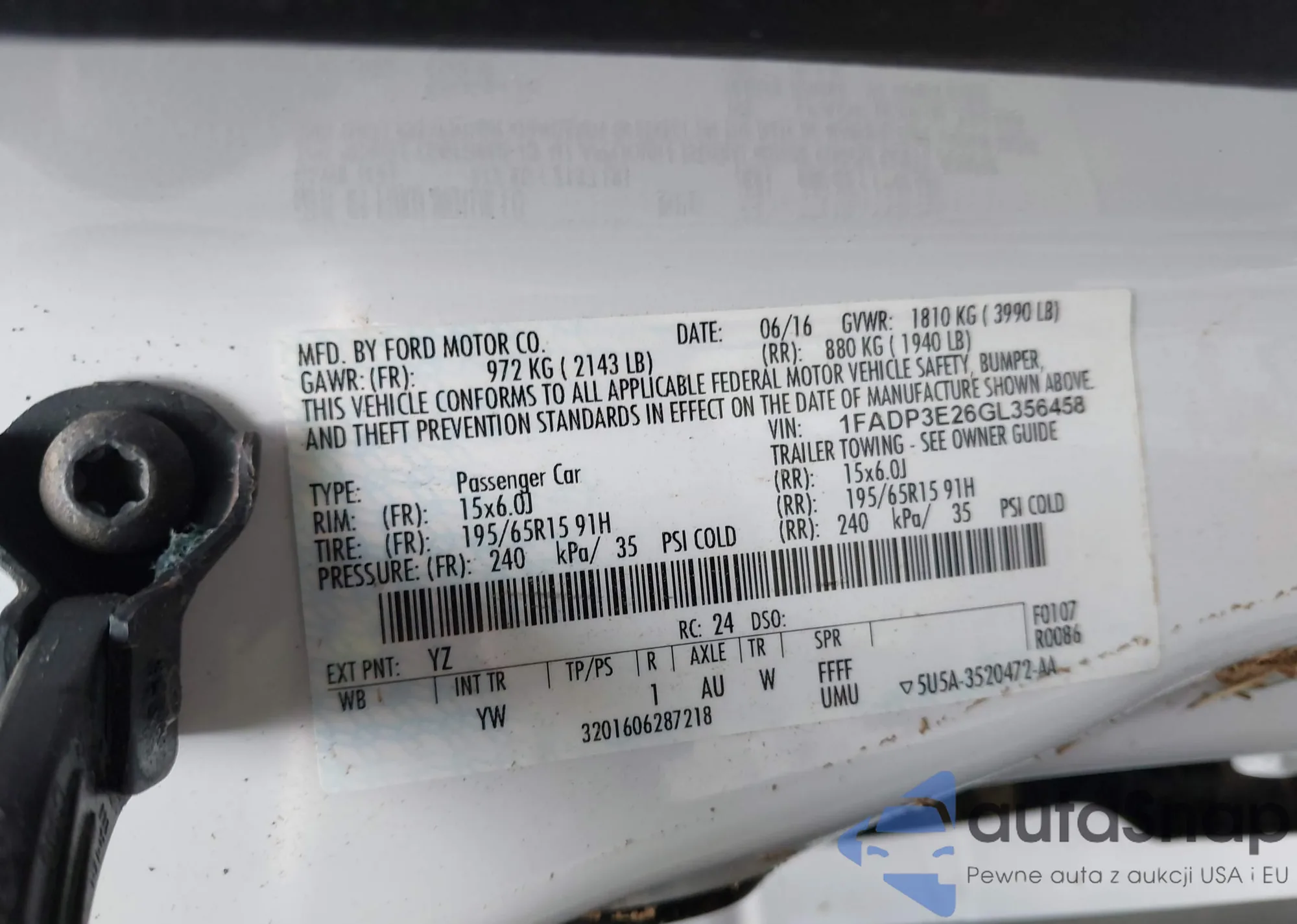 VIN: 1FADP3E26GL356458