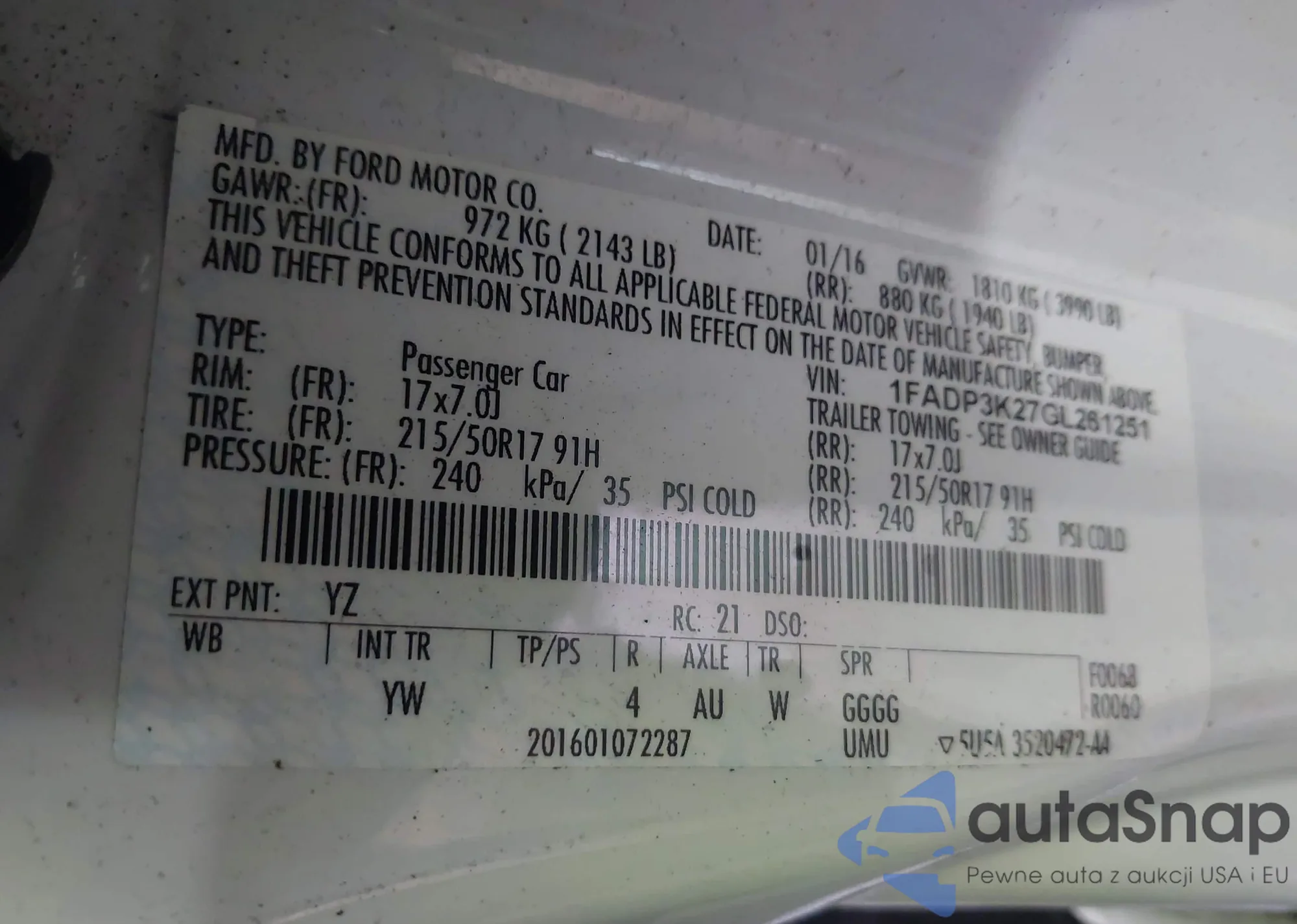 VIN: 1FADP3K27GL261251