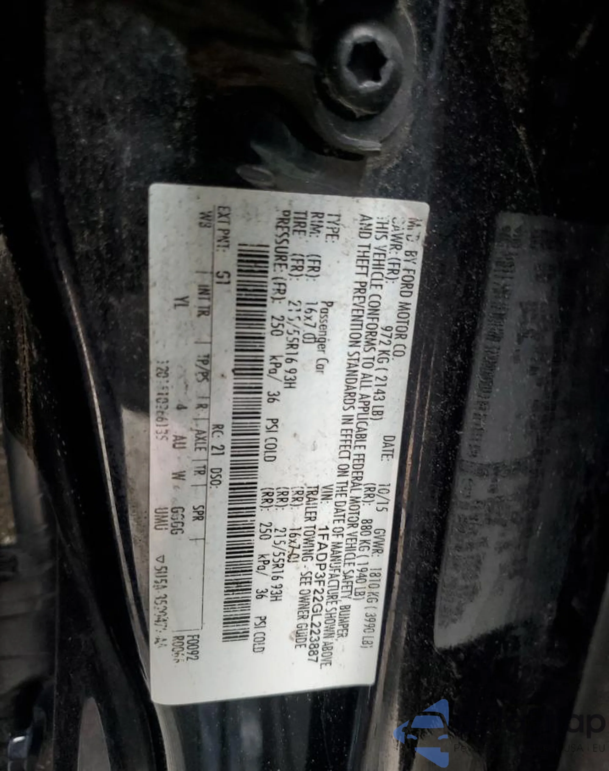 VIN: 1FADP3F22GL223887