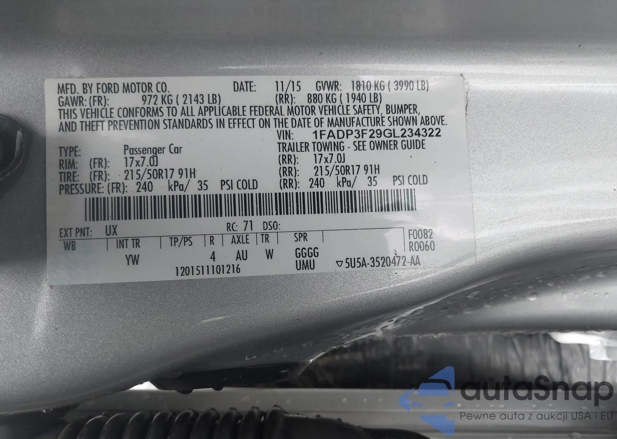 VIN: 1FADP3F29GL234322