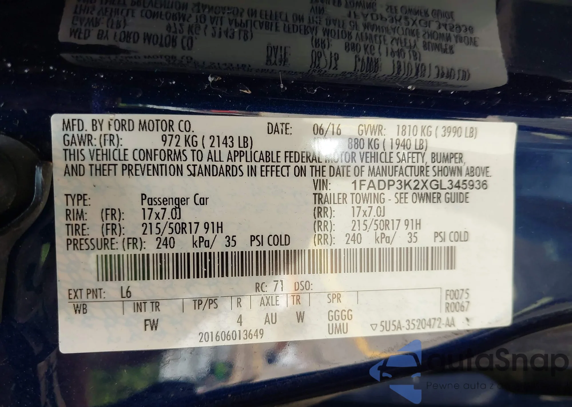 VIN: 1FADP3K2XGL345936