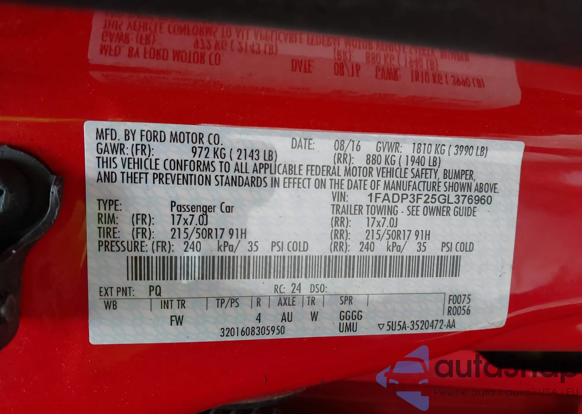 • VIN: 1FADP3F25GL376960