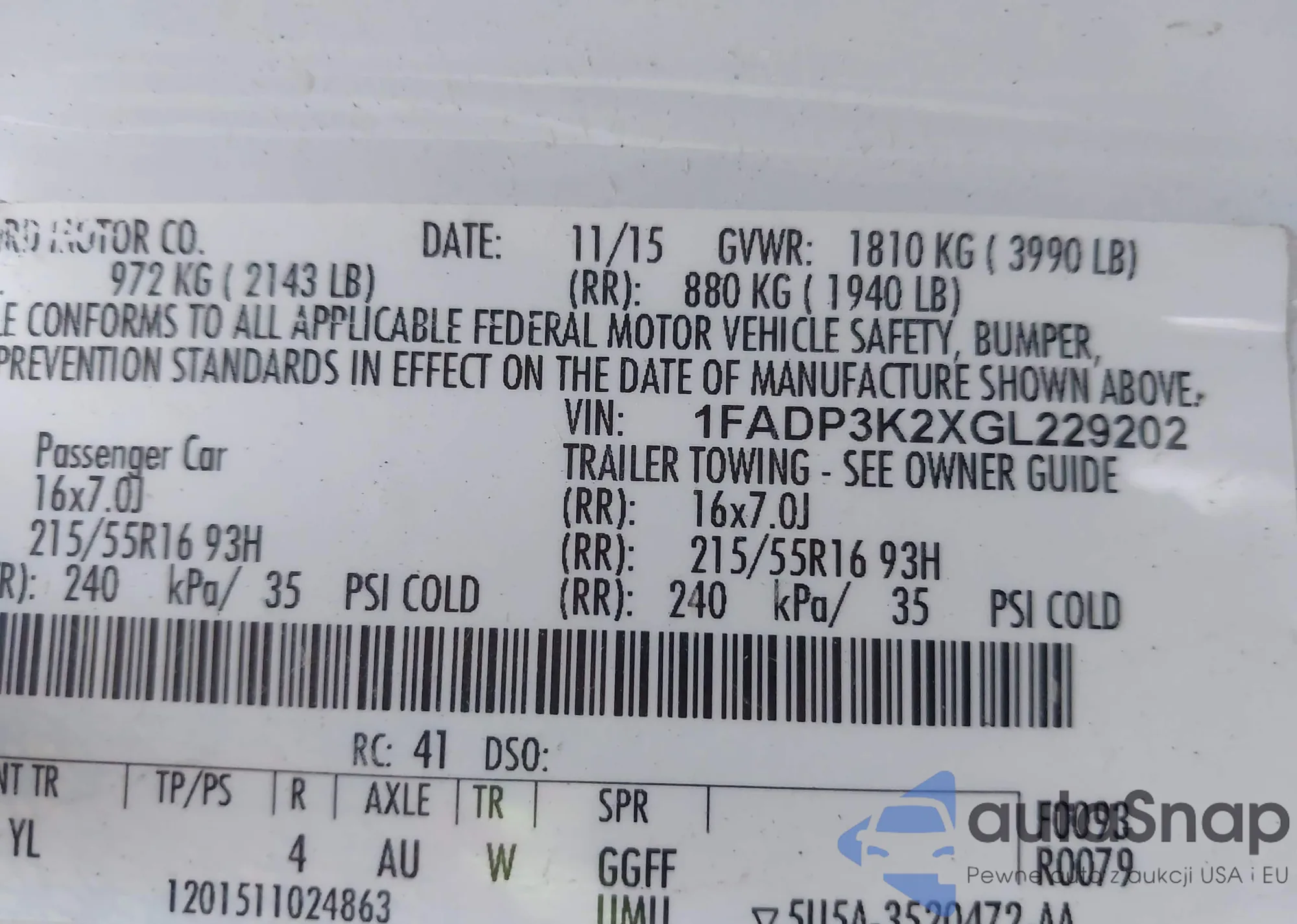 Автомобиль Ford Focus 2016 (VIN 1FADP3K2XGL229202) ранее не участвовал в торгах. Документы чистые, пробег соответствует или ниже среднего по рынку. Продаётся страховой компанией — рекомендуем покупку. Доставка в порт займет около 6–8 недель.