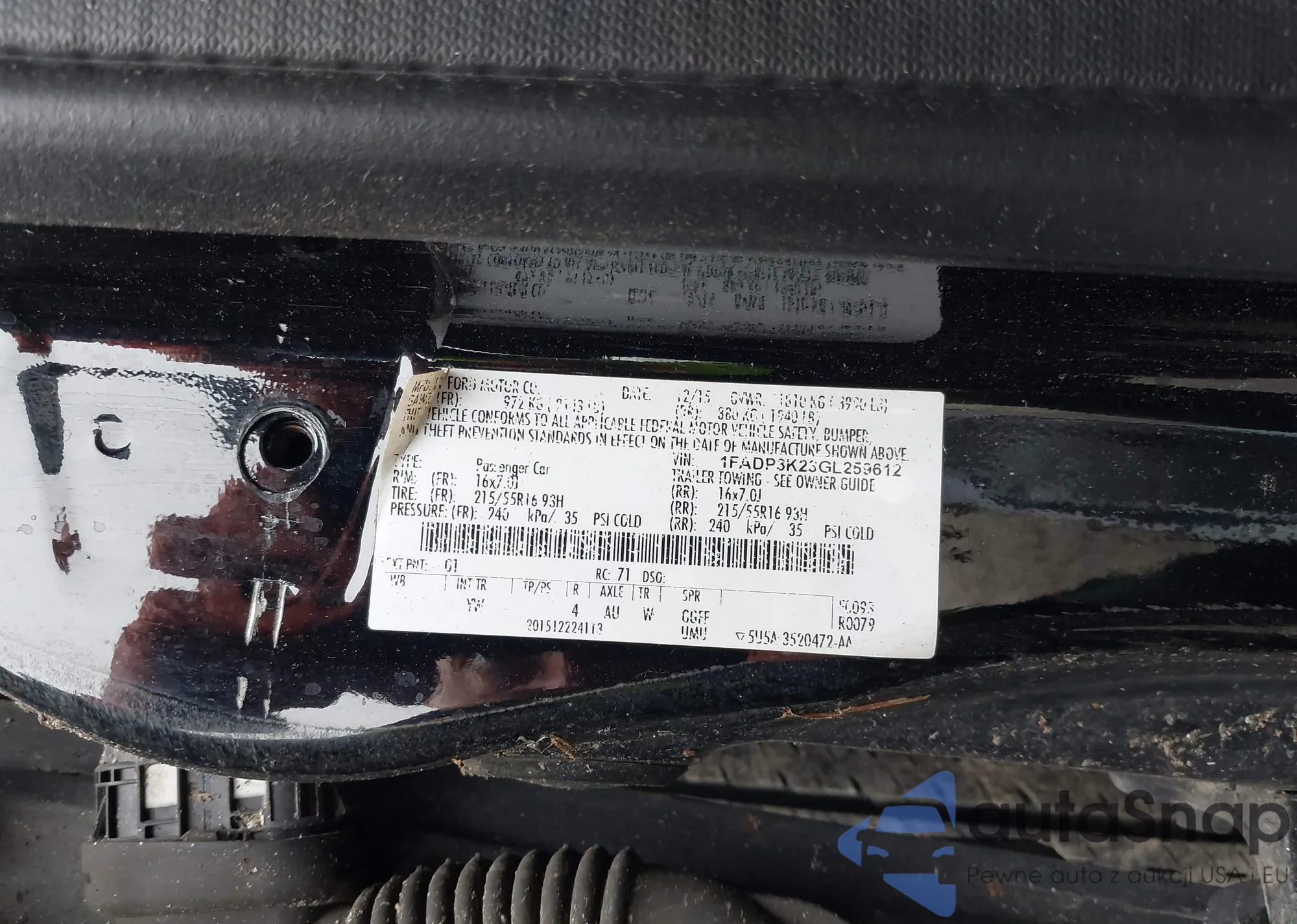 VIN: 1FADP3K23GL259612