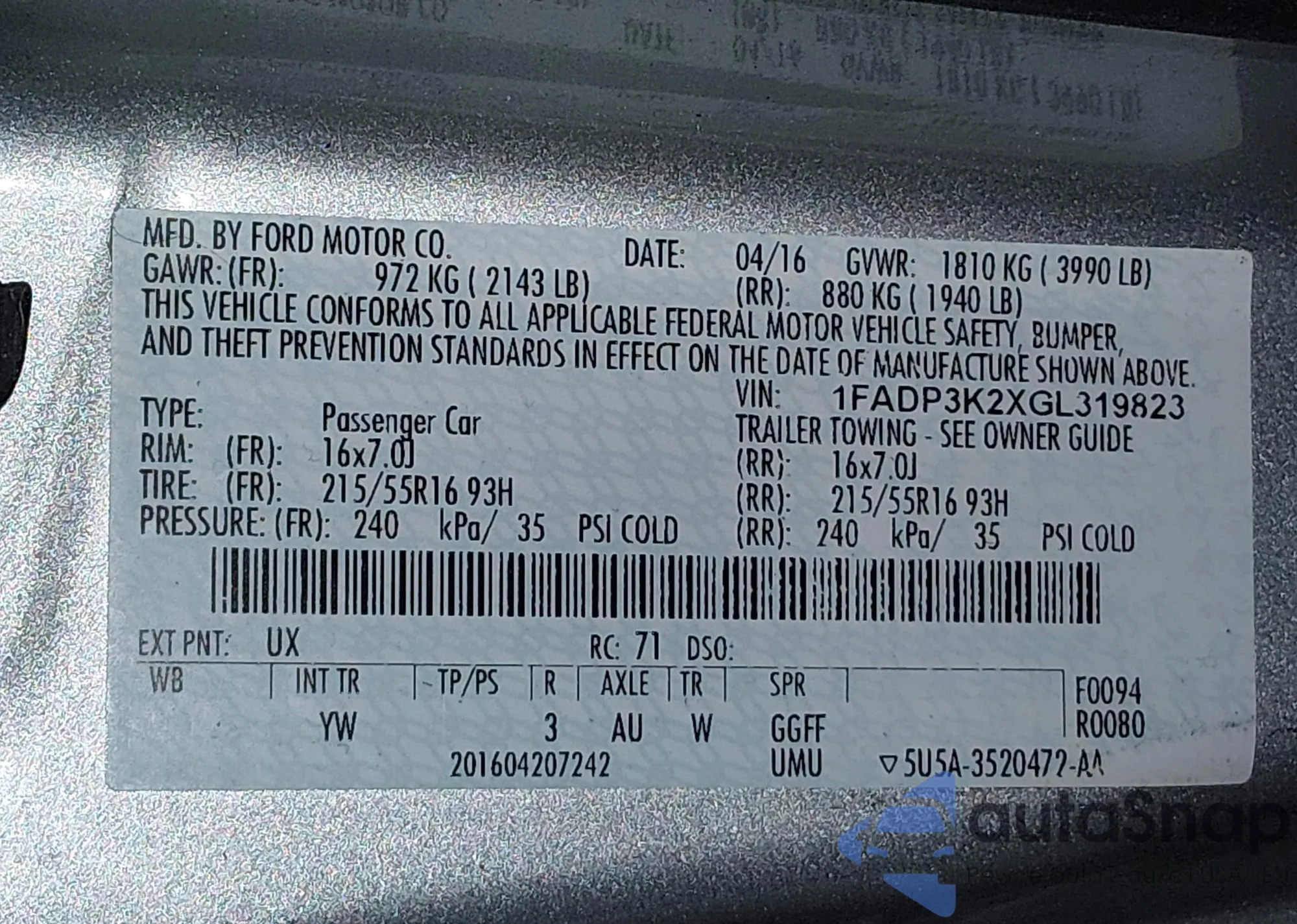 Автомобиль Ford Focus 2016 (VIN 1FADP3K2XGL319823) ранее не участвовал в торгах. Документы чистые, пробег соответствует или ниже среднего по рынку. Продаётся страховой компанией — рекомендуем покупку. Доставка в порт займет около 6–8 недель.