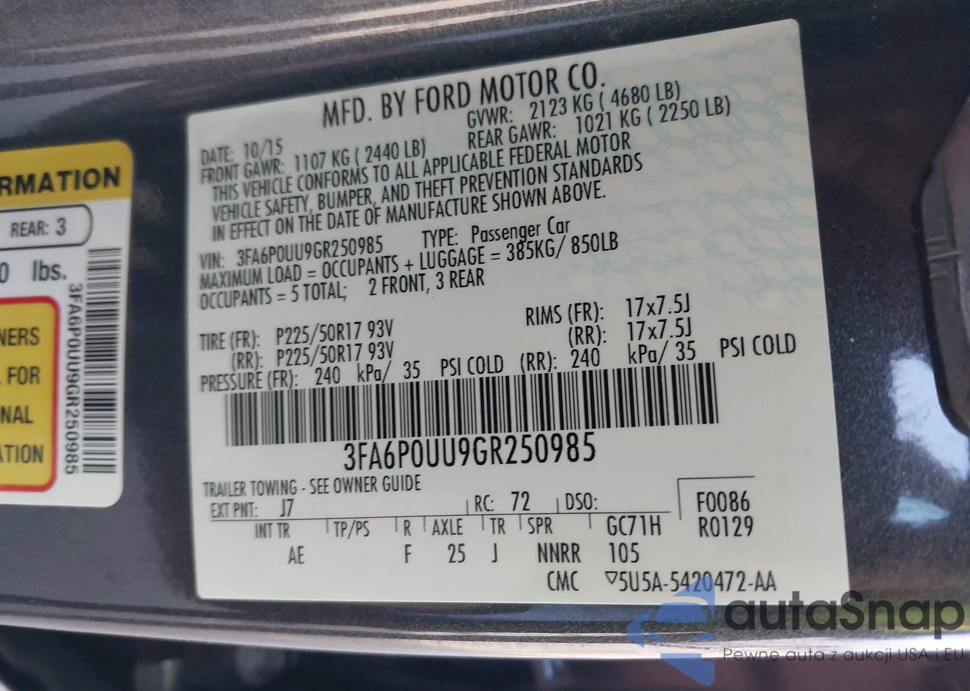Автомобиль Ford Fusion 2016 (VIN 3FA6P0UU9GR250985) ранее не участвовал в торгах. Документы чистые, пробег соответствует или ниже среднего по рынку. Продаётся страховой компанией — рекомендуем покупку. Доставка в порт займет около 6–8 недель.