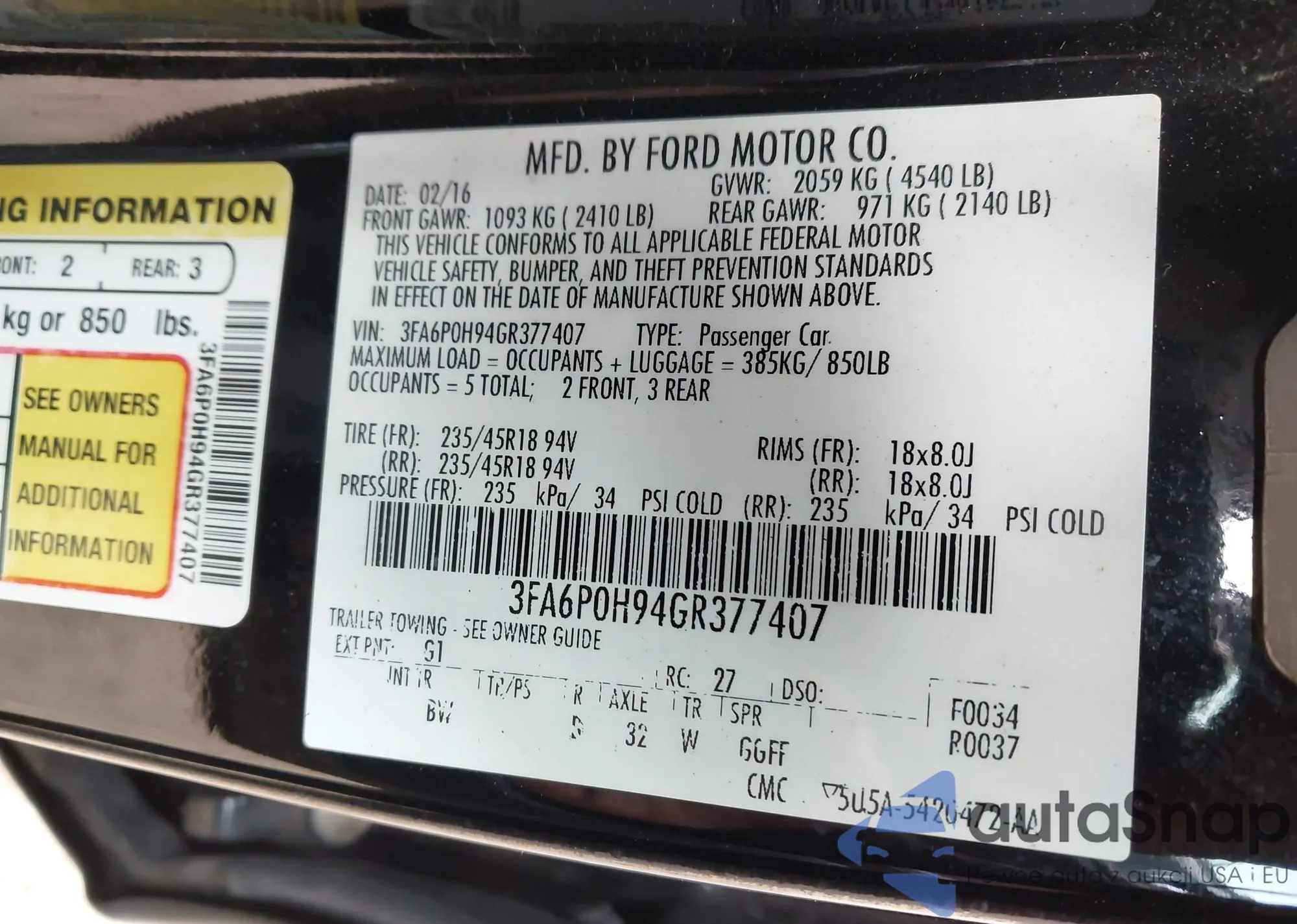 Автомобиль Ford Fusion 2016 (VIN 3FA6P0H94GR377407) имеет документы, препятствующие регистрации. Могут возникнуть сложности при экспорте и регистрации. Обратитесь к экспертам AutaSnap для поиска альтернатив.