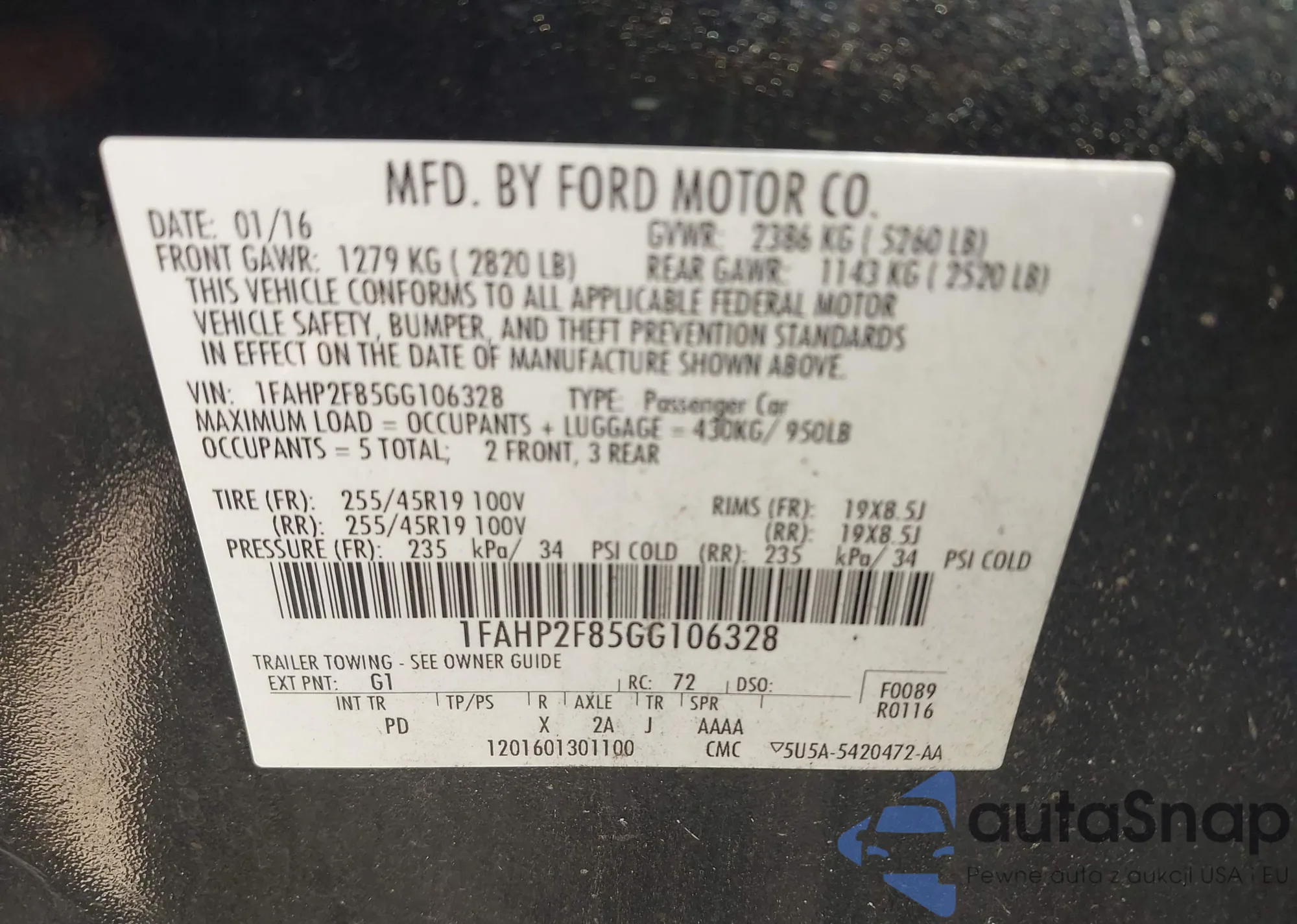 VIN: 1FAHP2F85GG106328