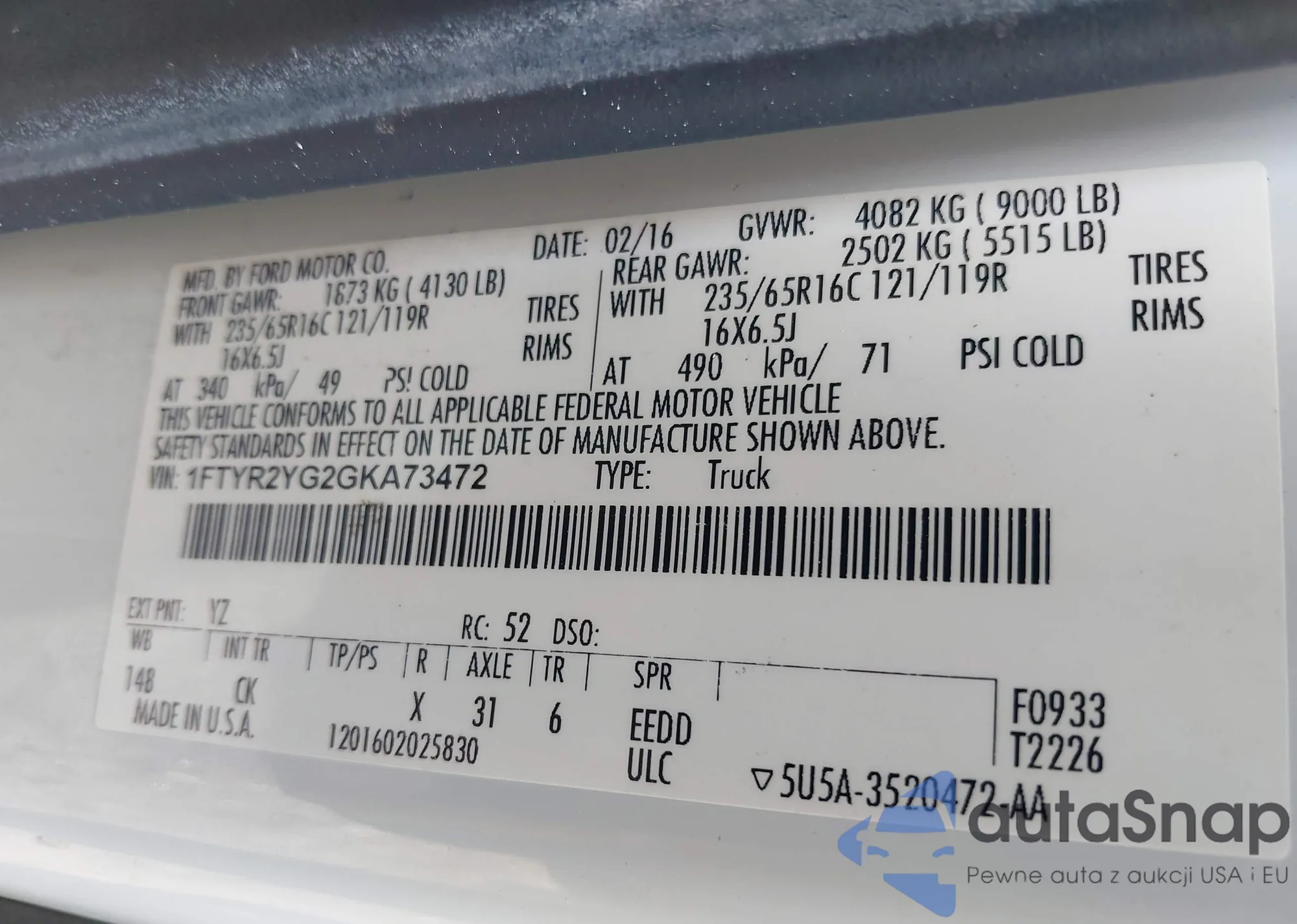 • VIN: 1FTYR2YG2GKA73472