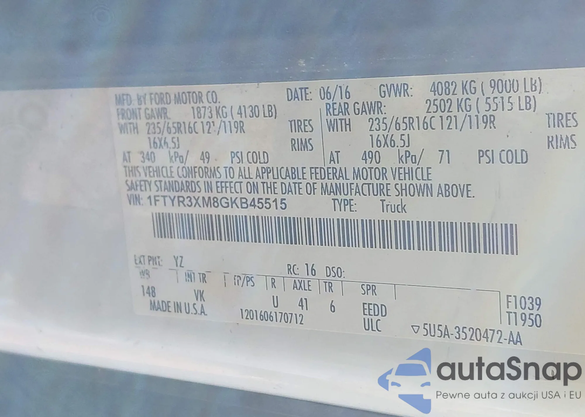 VIN: 1FTYR3XM8GKB45515