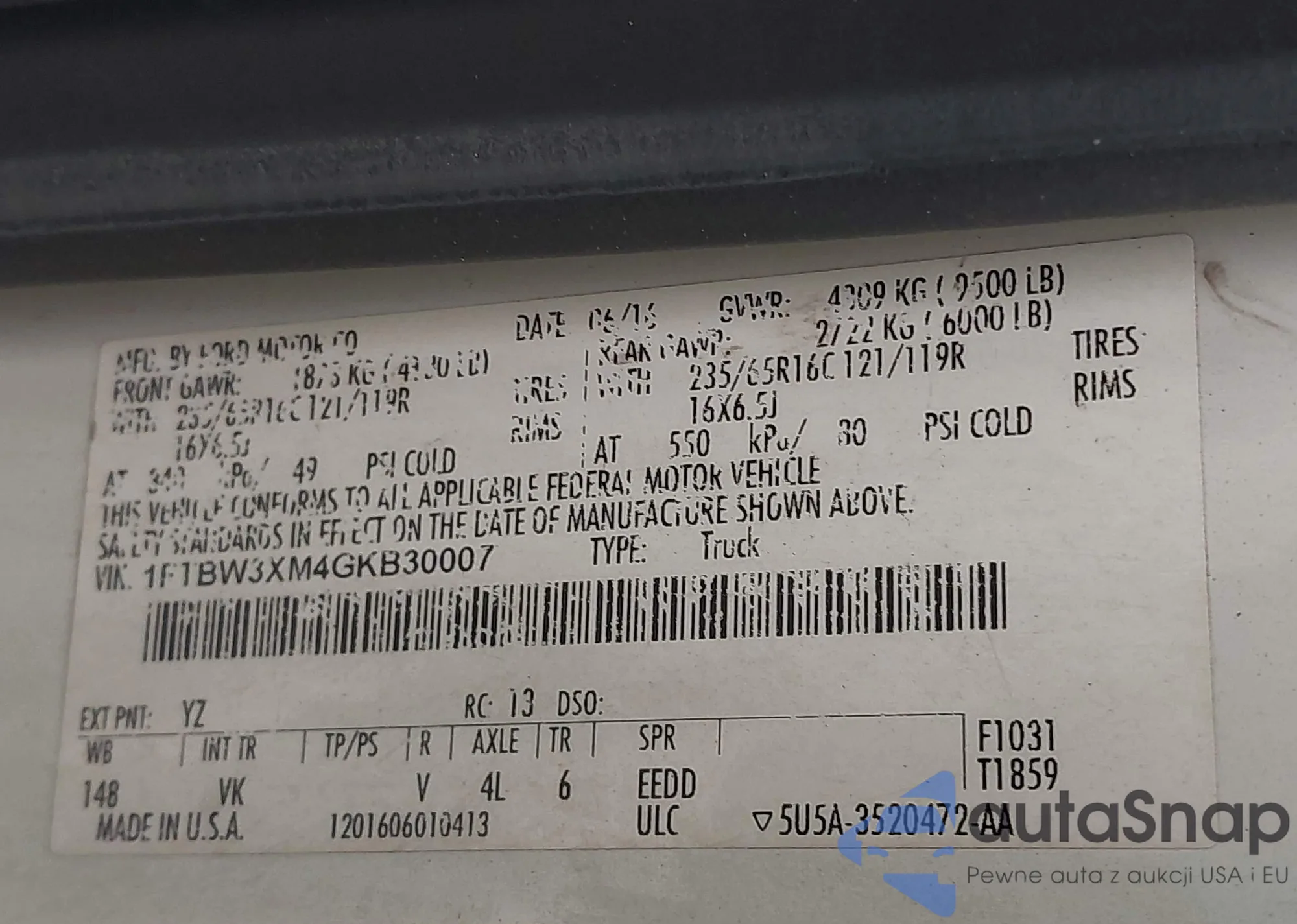 VIN: 1FTBW3XM4GKB30007