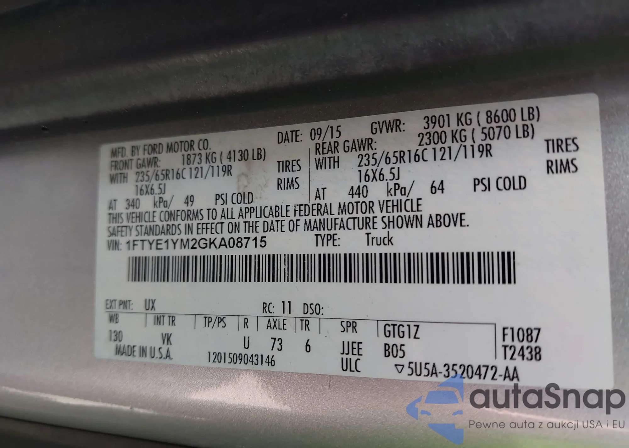 • VIN: 1FTYE1YM2GKA08715