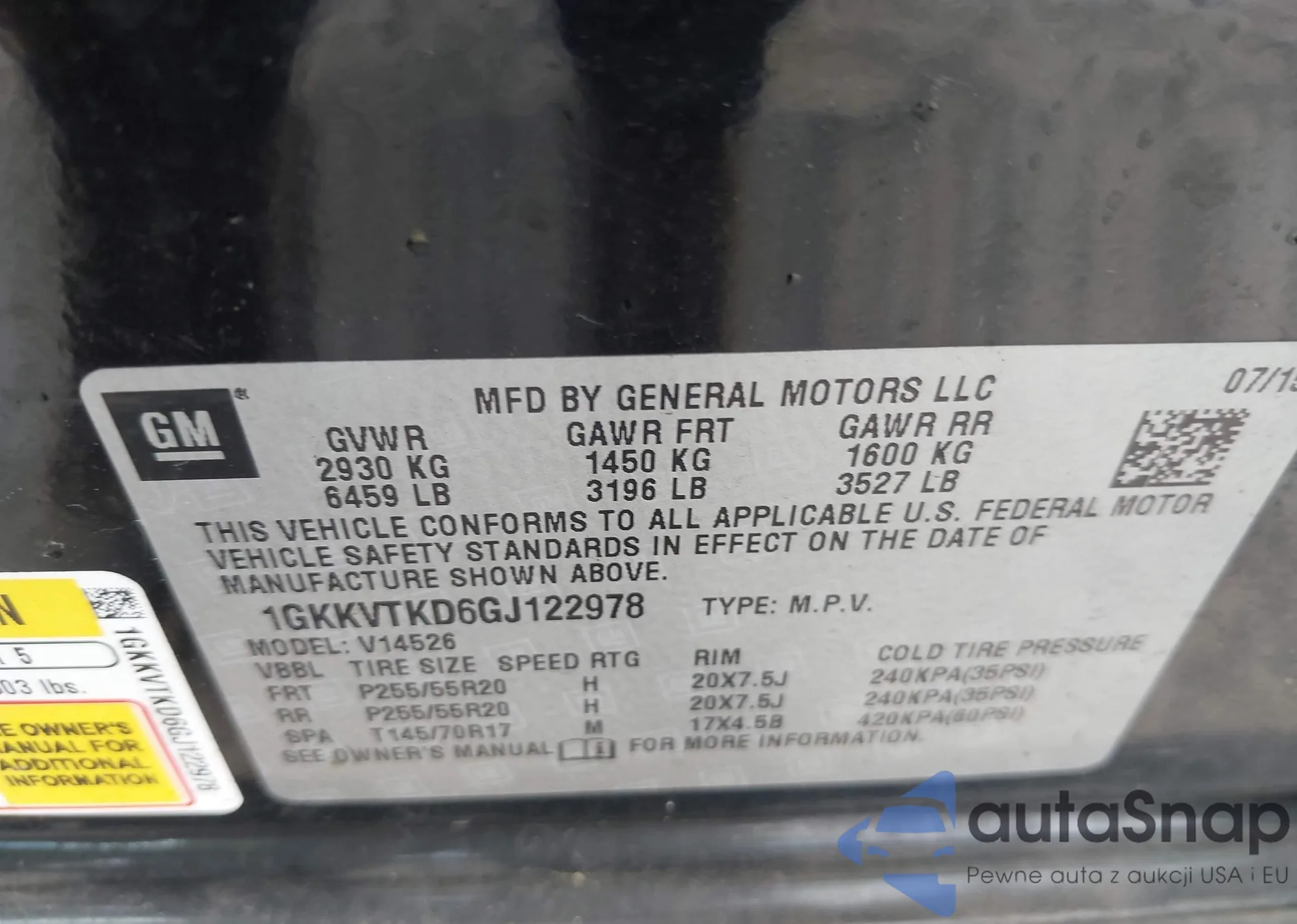 VIN: 1GKKVTKD6GJ12298