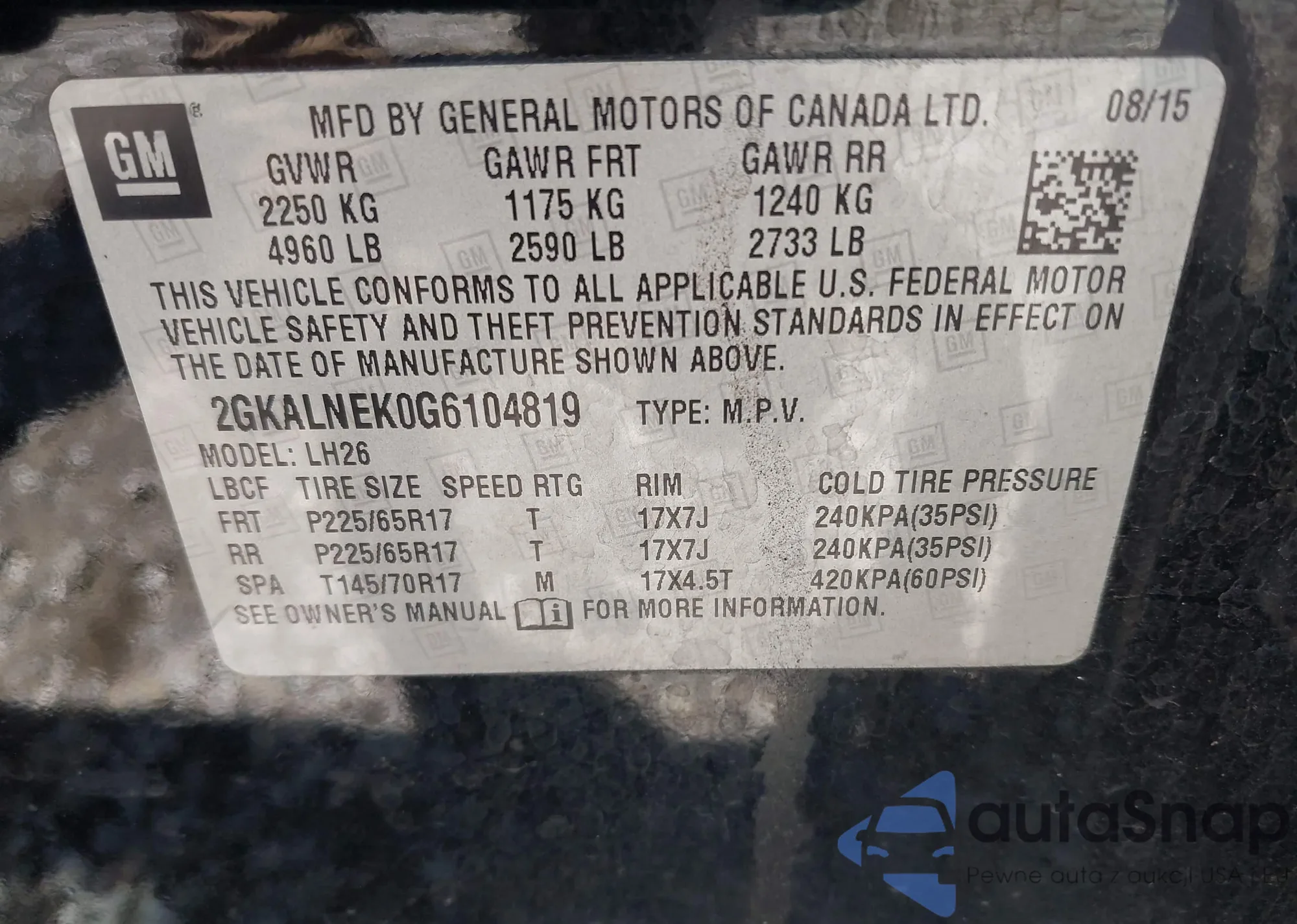 VIN: 2GKALNEK0G6104819