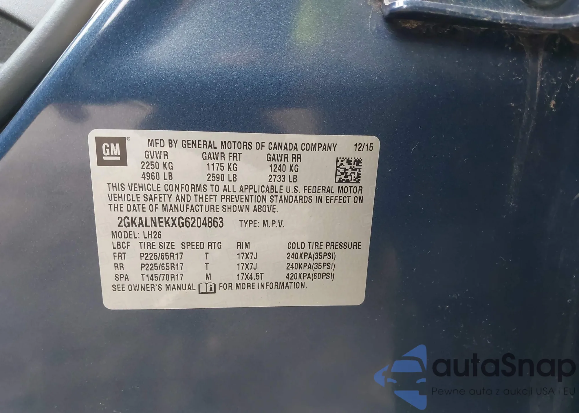 VIN: 2GKALNEKXG6204863