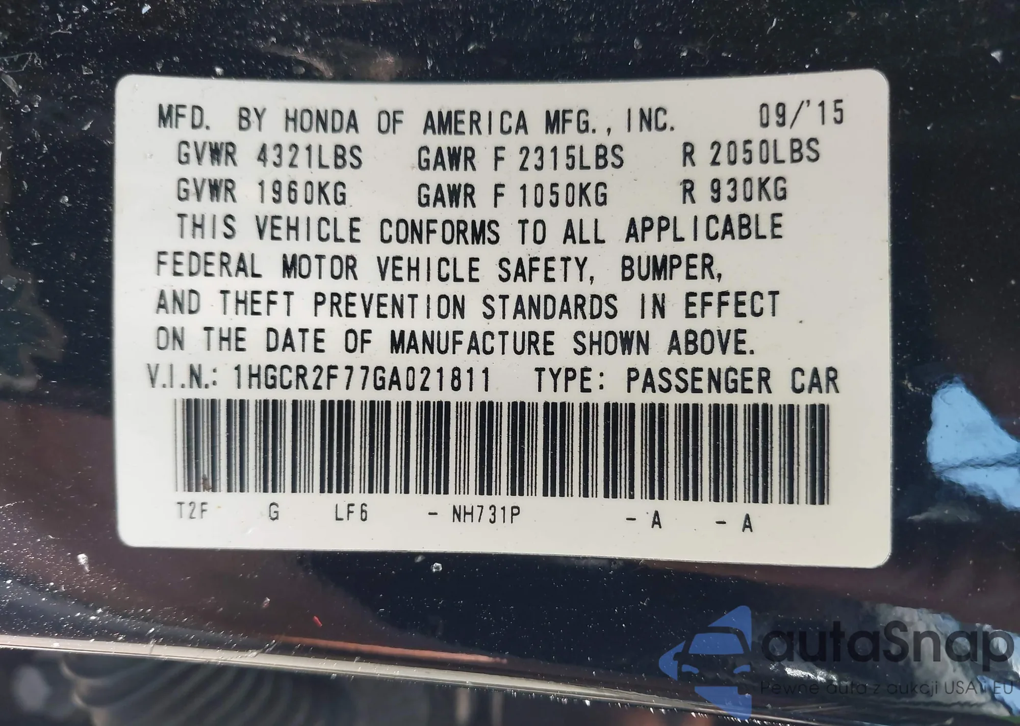 VIN: 1HGCR2F77GA021811