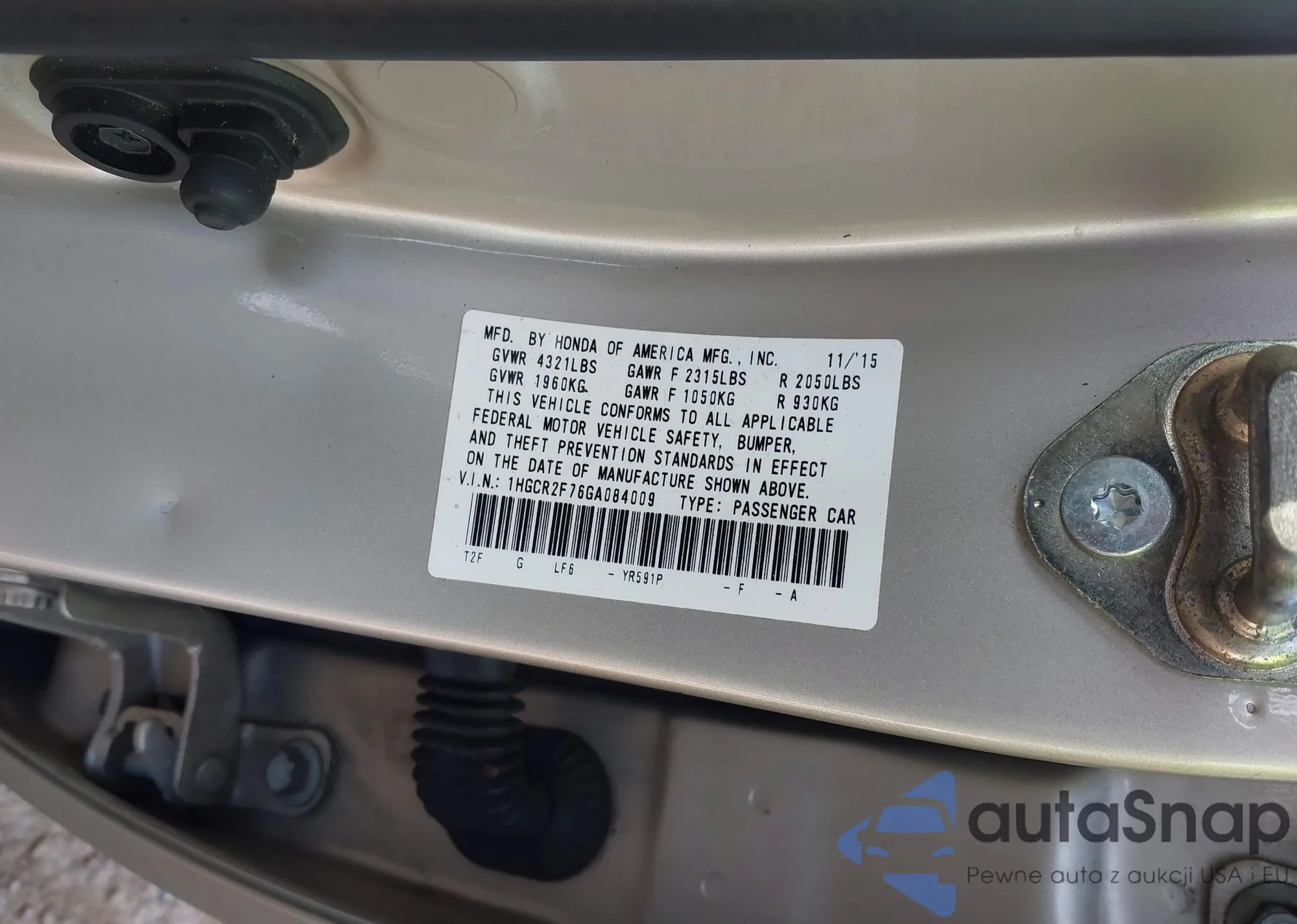 VIN: 1HGCR2F76GA084009