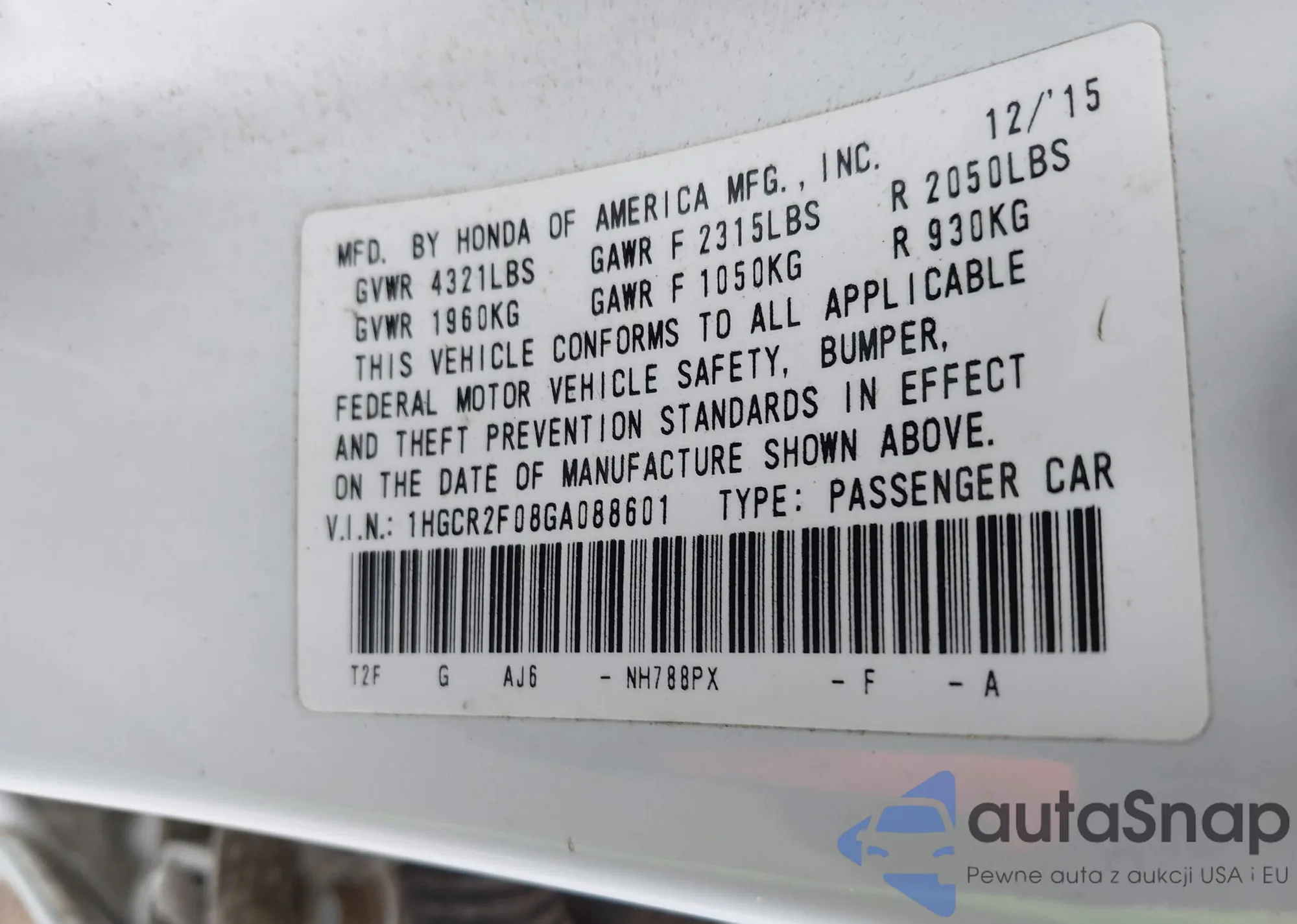 VIN: 1HGCR2F08GA088601