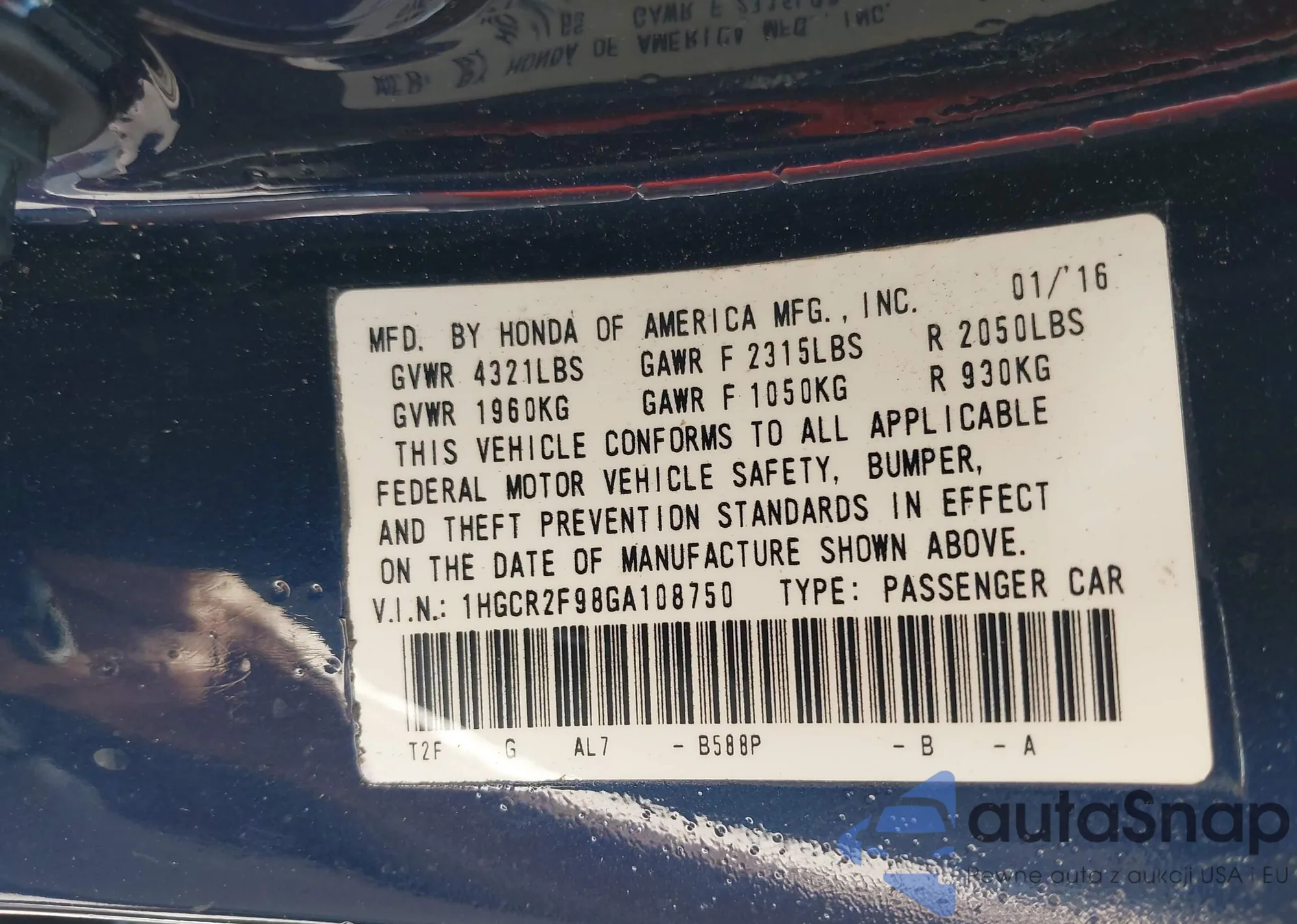 VIN: 1HGCR2F98GA108750