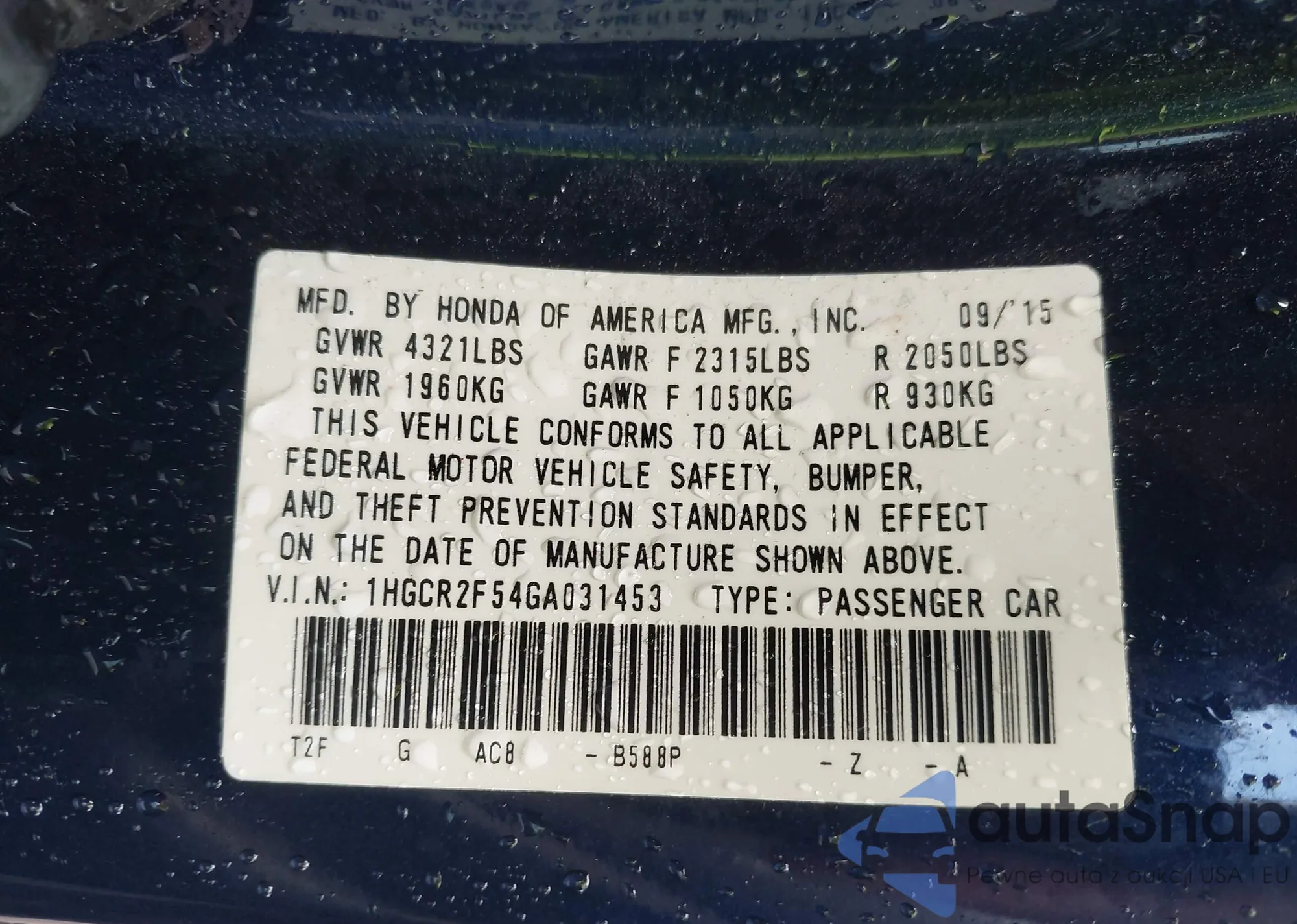 VIN: 1HGCR2F54GA031453
