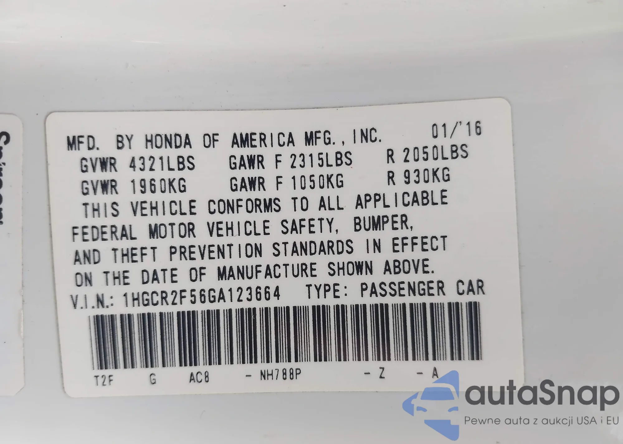 VIN: 1HGCR2F56GA123664