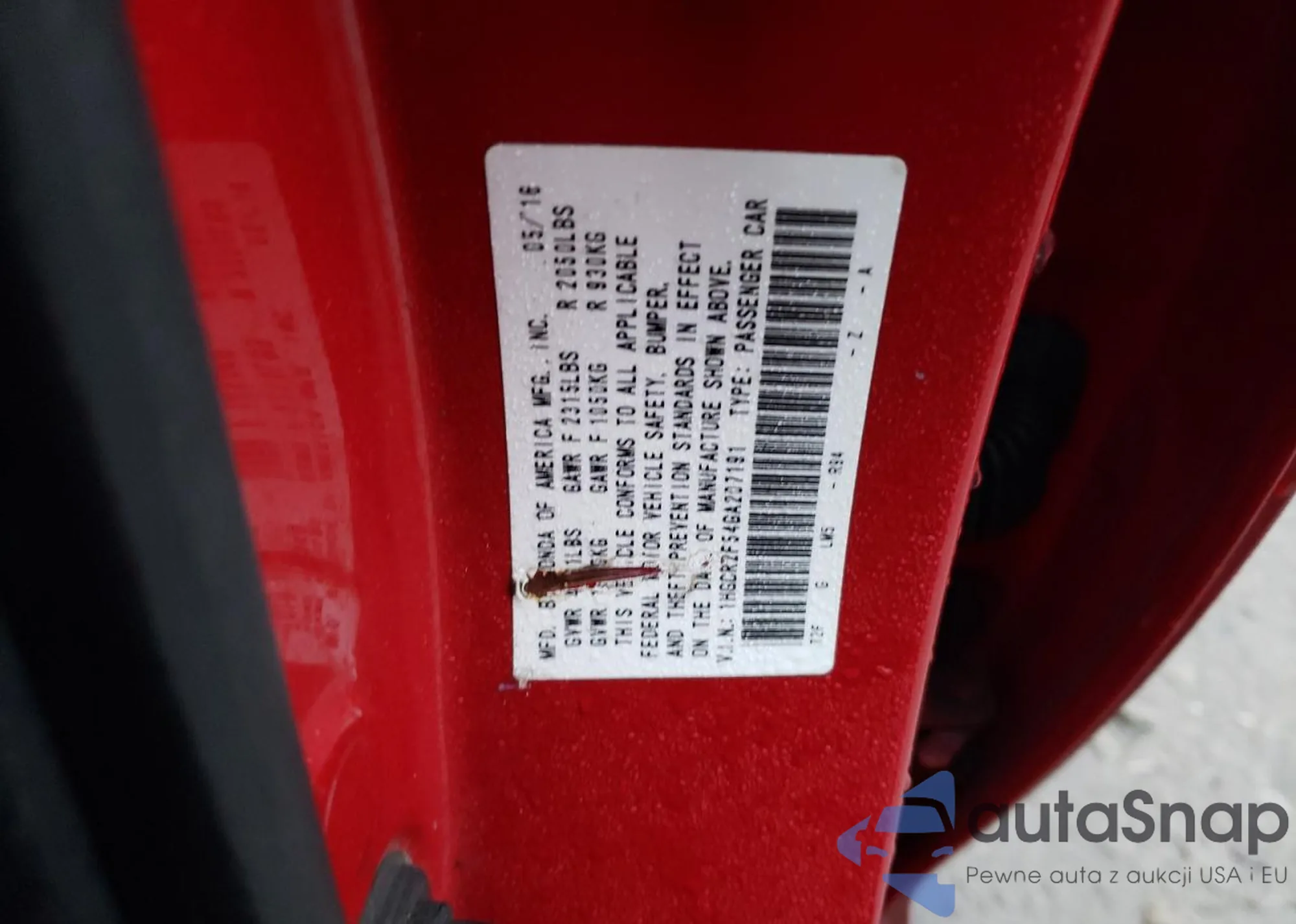 VIN: 1HGCR2F54GA207191