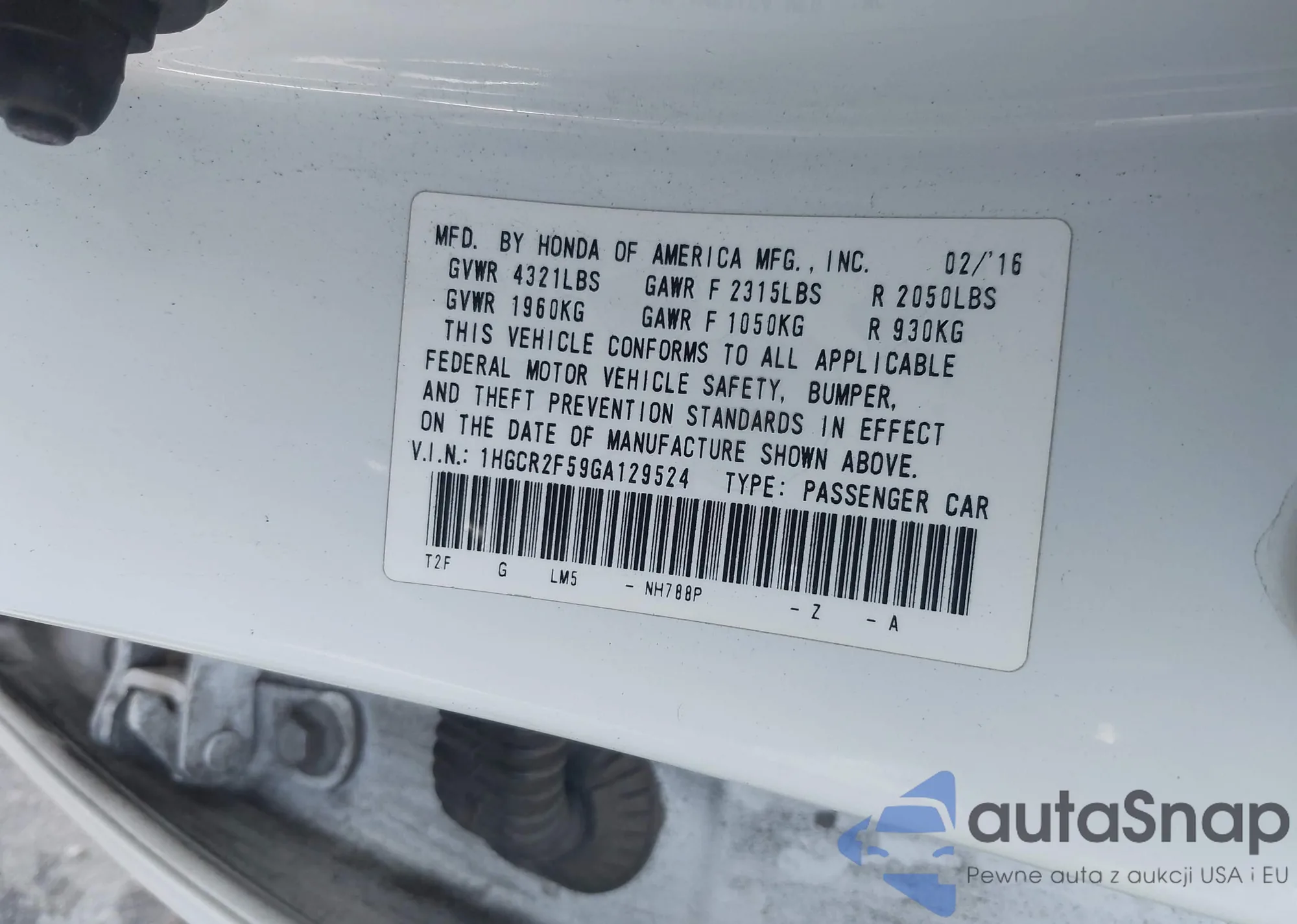 VIN: 1HGCR2F59GA129524