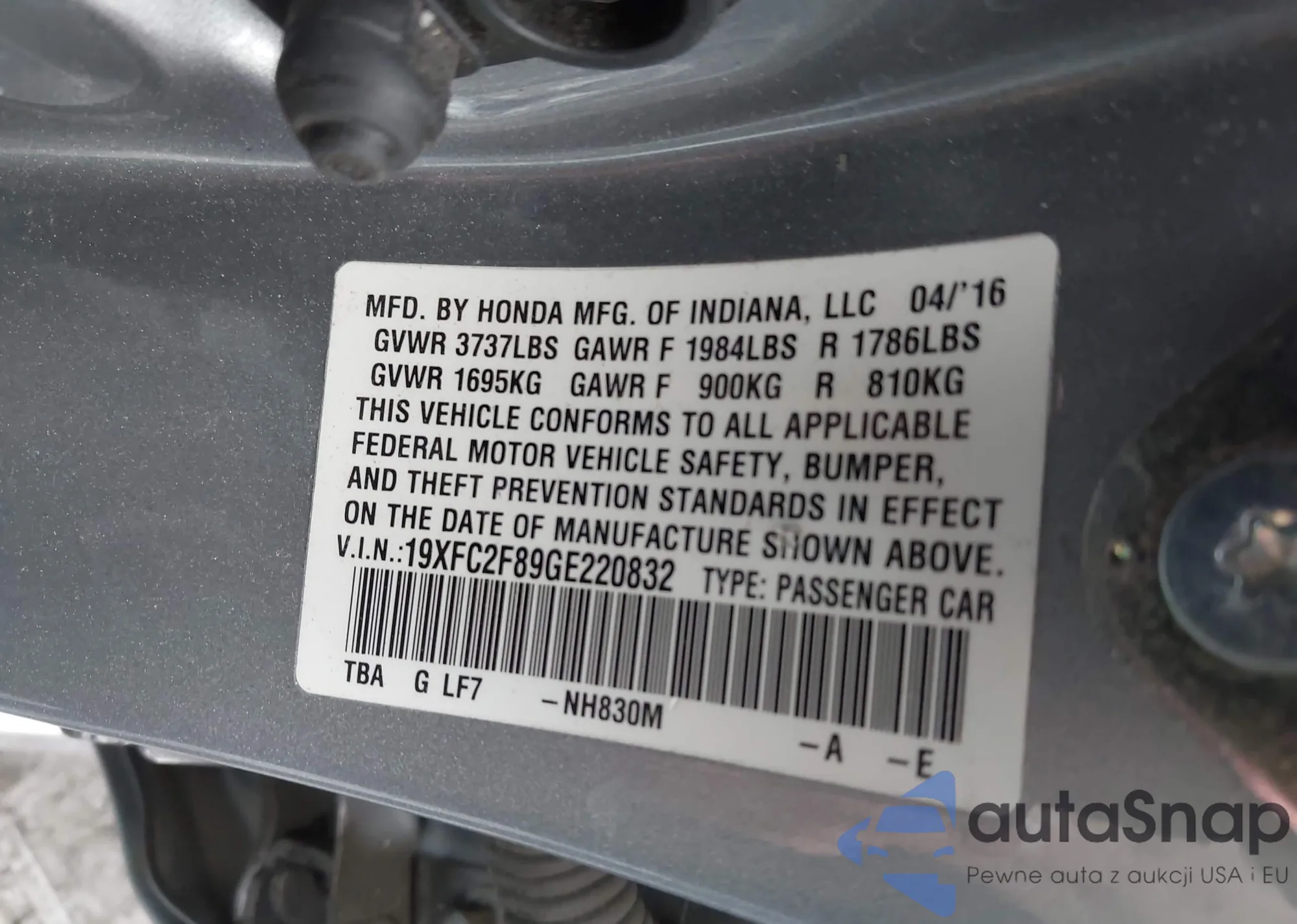 VIN: 19XFC2F89GE220832