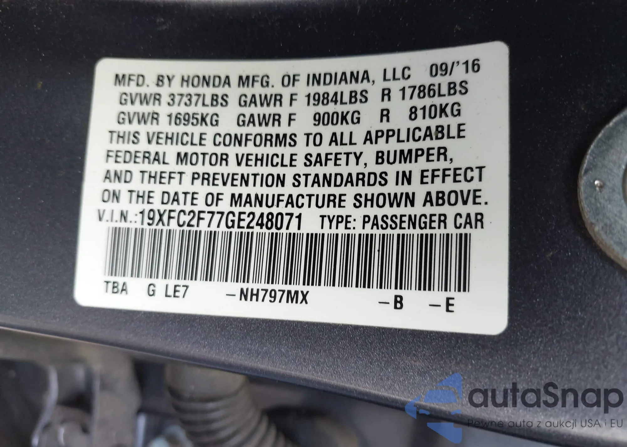 VIN: 19XFC2F77GE248071