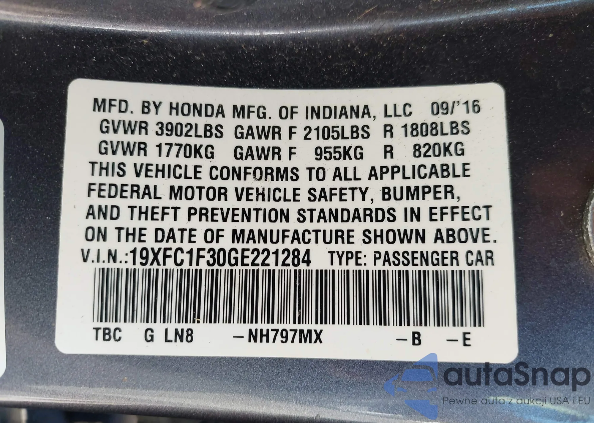 VIN: 19XFC1F30GE221284