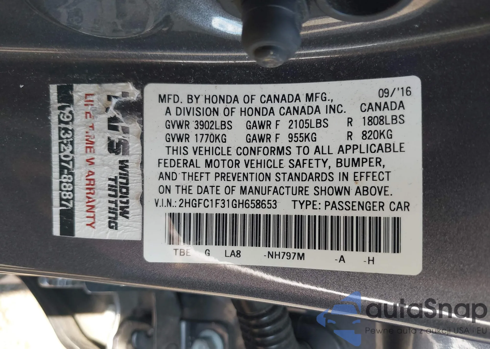 VIN: 2HGFC1F31GH658653