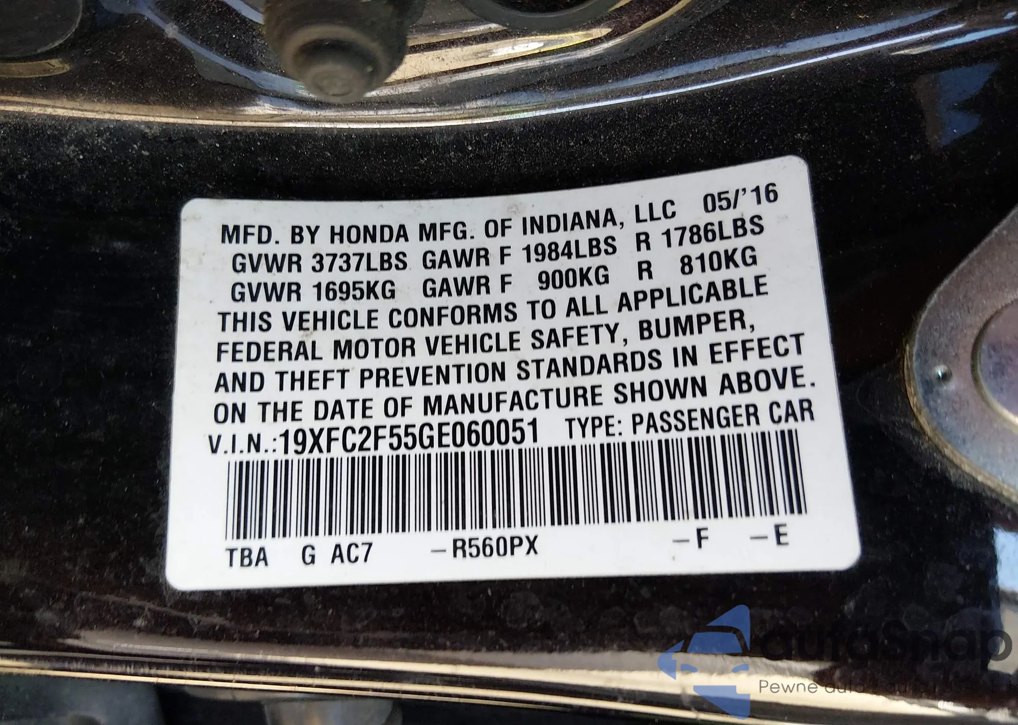 VIN: 19XFC2F55GE060051