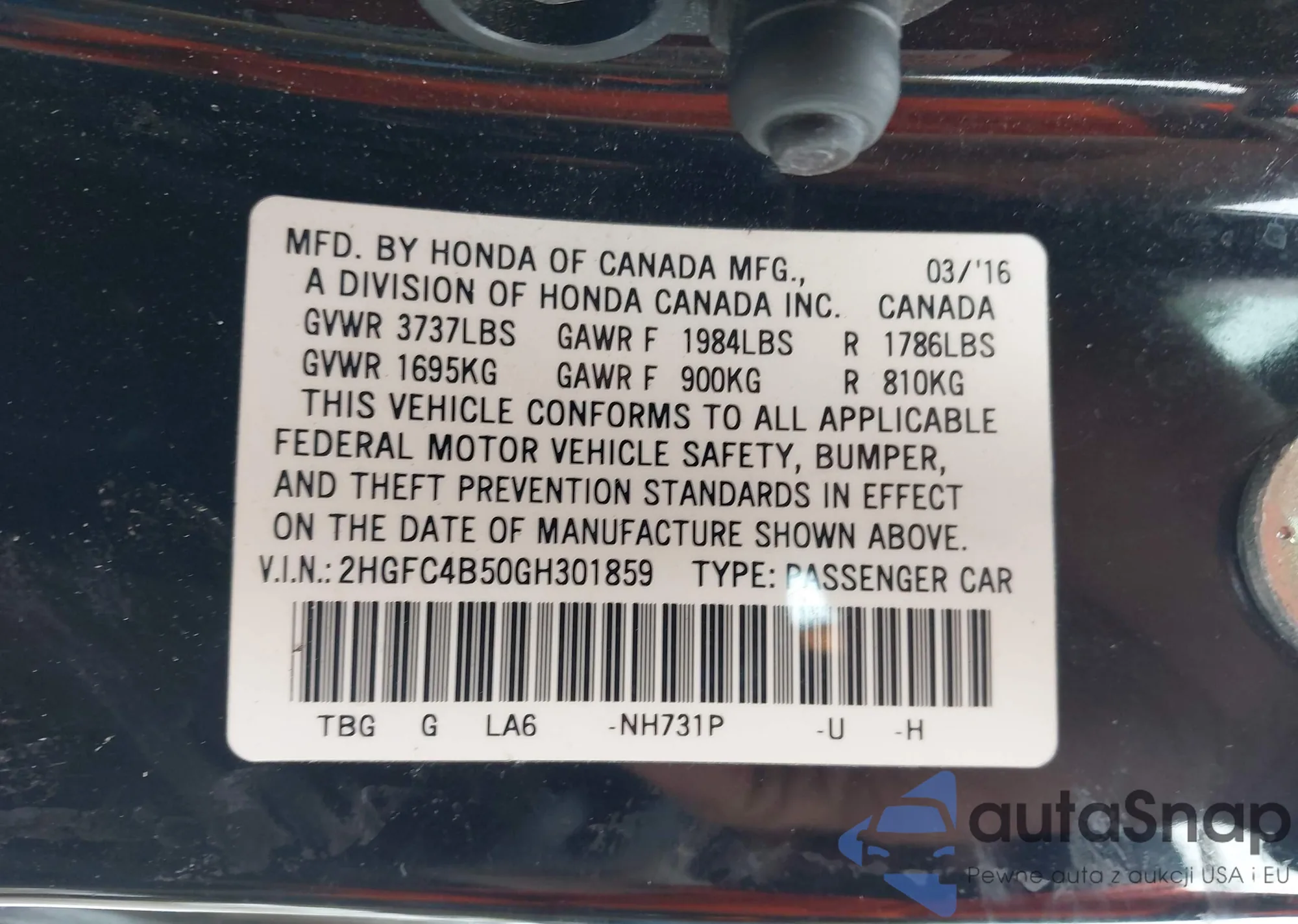 VIN: 2HGFC4B50GH301859