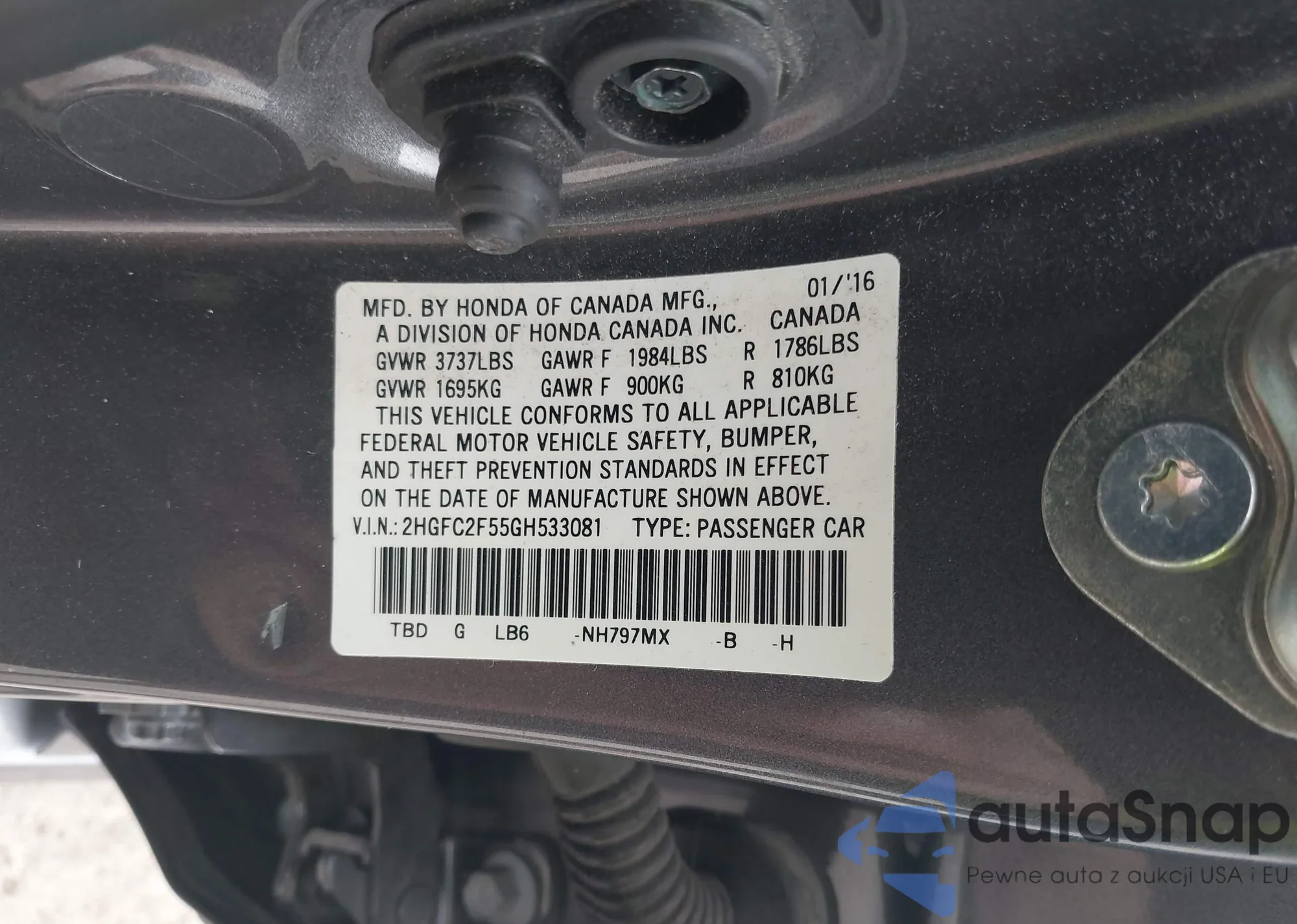 VIN: 2HGFC2F55GH533081