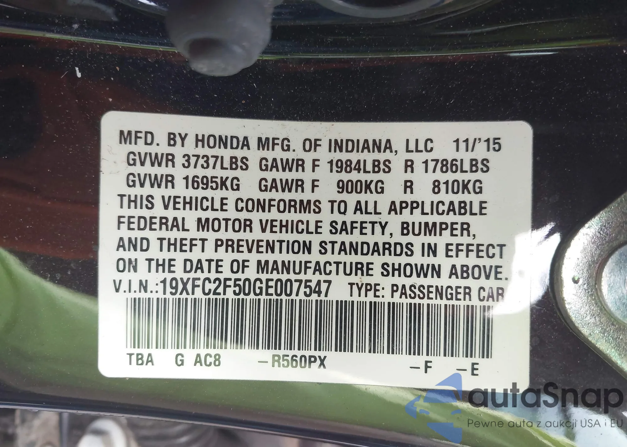 Автомобиль Honda Civic 2016 (VIN 19XFC2F50GE007547) ранее не участвовал в торгах. Документы чистые, пробег соответствует или ниже среднего по рынку. Продаётся страховой компанией — рекомендуем покупку. Доставка в порт займет около 6–8 недель.